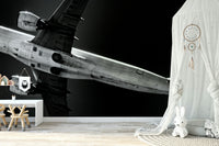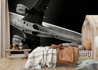 Experience the breathtaking power and stark beauty of flight with "Overhead," a captivating wallpaper that redefines perspective. This monochrome masterpiece presents a dramatic, upward-angled view of a commercial airliner in full ascent, dominating the frame against a dark, limitless sky. The high-contrast black and white rendering accentuates the intricate details of the aircraft's undercarriage, from the massive engines gleaming in the sunlight to the precisely engineered wings and fuselage. Feel the raw energy of the jet engines, frozen in a moment of powerful thrust. "Overhead" is more than just an image; it's an invitation to contemplate the marvels of engineering and the boundless spirit of human innovation. Elevate your screen with this stunning depiction of modern aviation, a reminder of the heights we can achieve and the worlds we can explore.