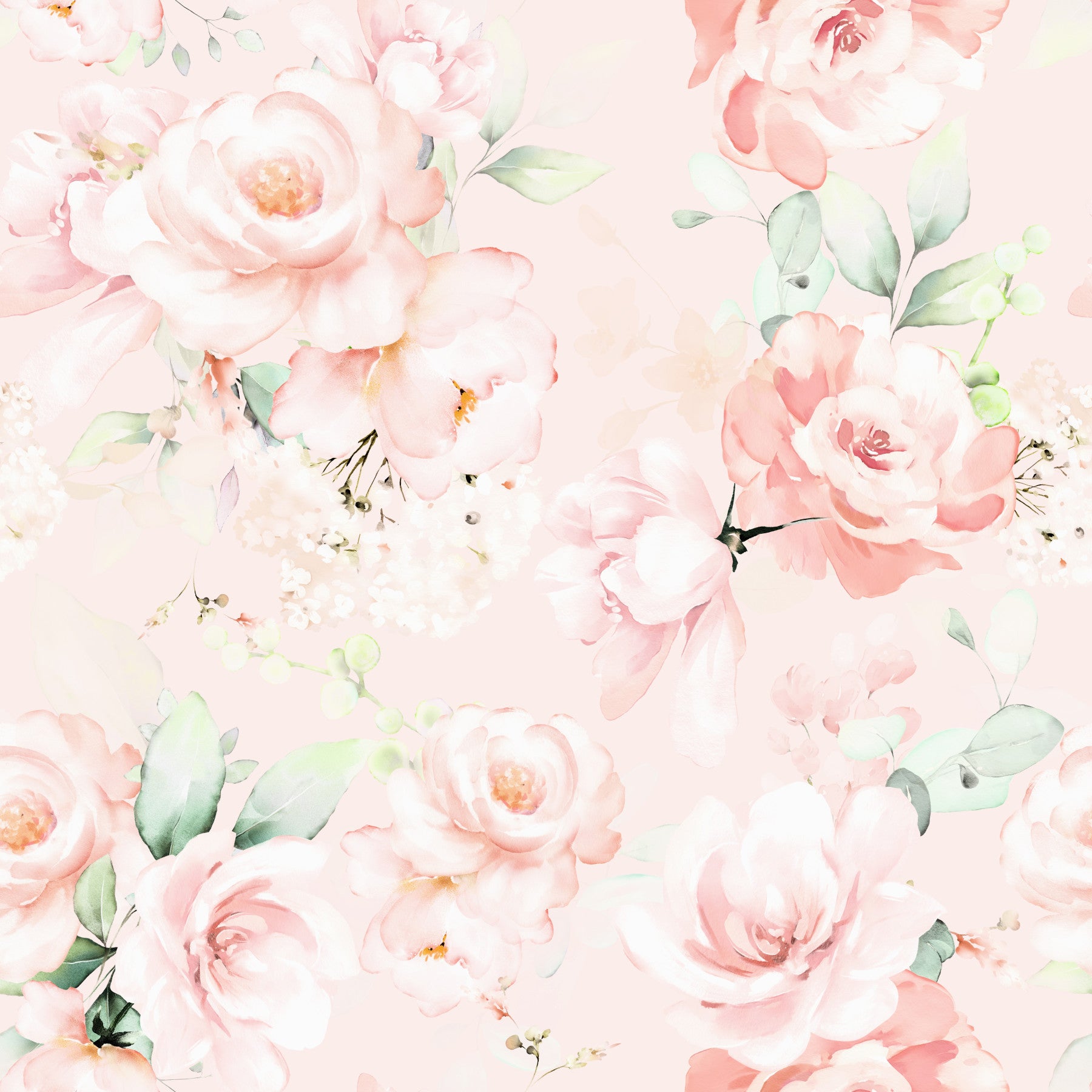 Painted Rose Garden wallpaper for walls, blush pink floral print