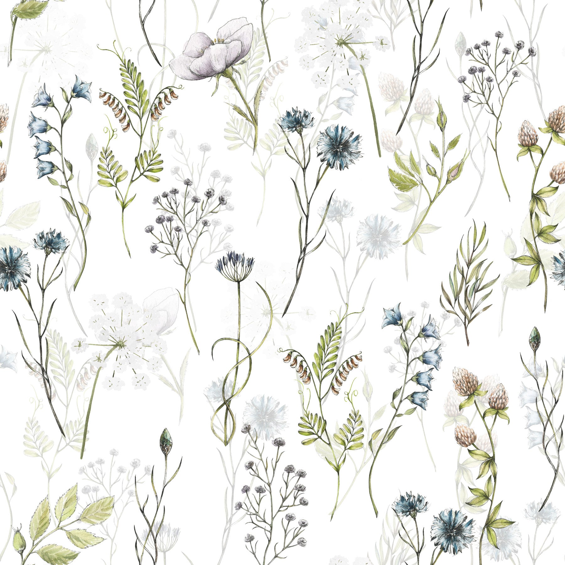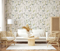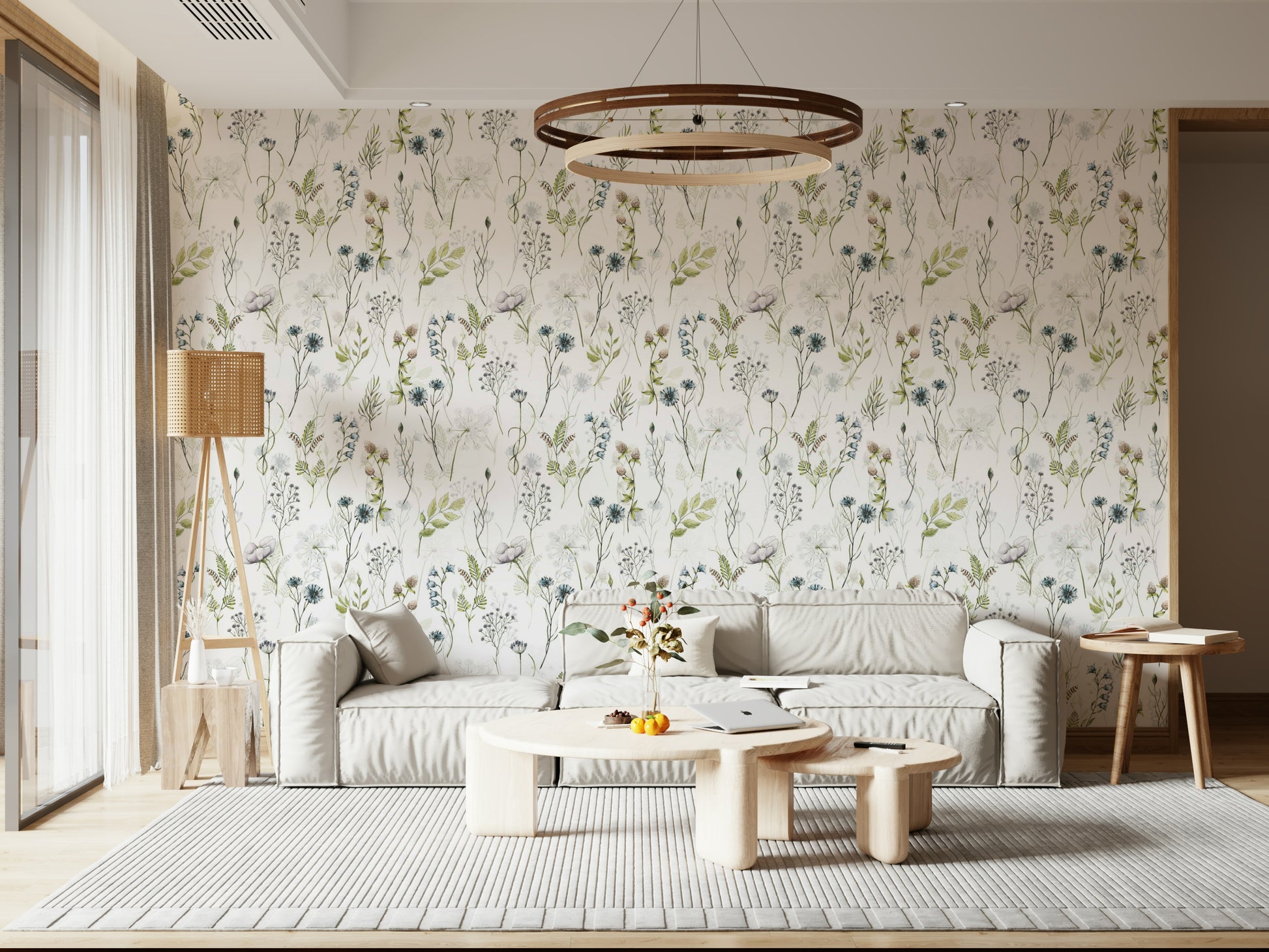 Transform your space with the gentle beauty of painted wildflowers. This design by Uta Naumann showcases an array of delicate blooms in soothing tones of blue, green, and cream. The brushstroke texture adds depth, providing a soft, inviting atmosphere. This wallpaper for walls brings a touch of the countryside into any room. Ideal for bedrooms, living rooms, or powder rooms, it integrates well with minimalist furniture and natural textures. Embrace a sense of peaceful elegance that complements classic and contemporary decor.