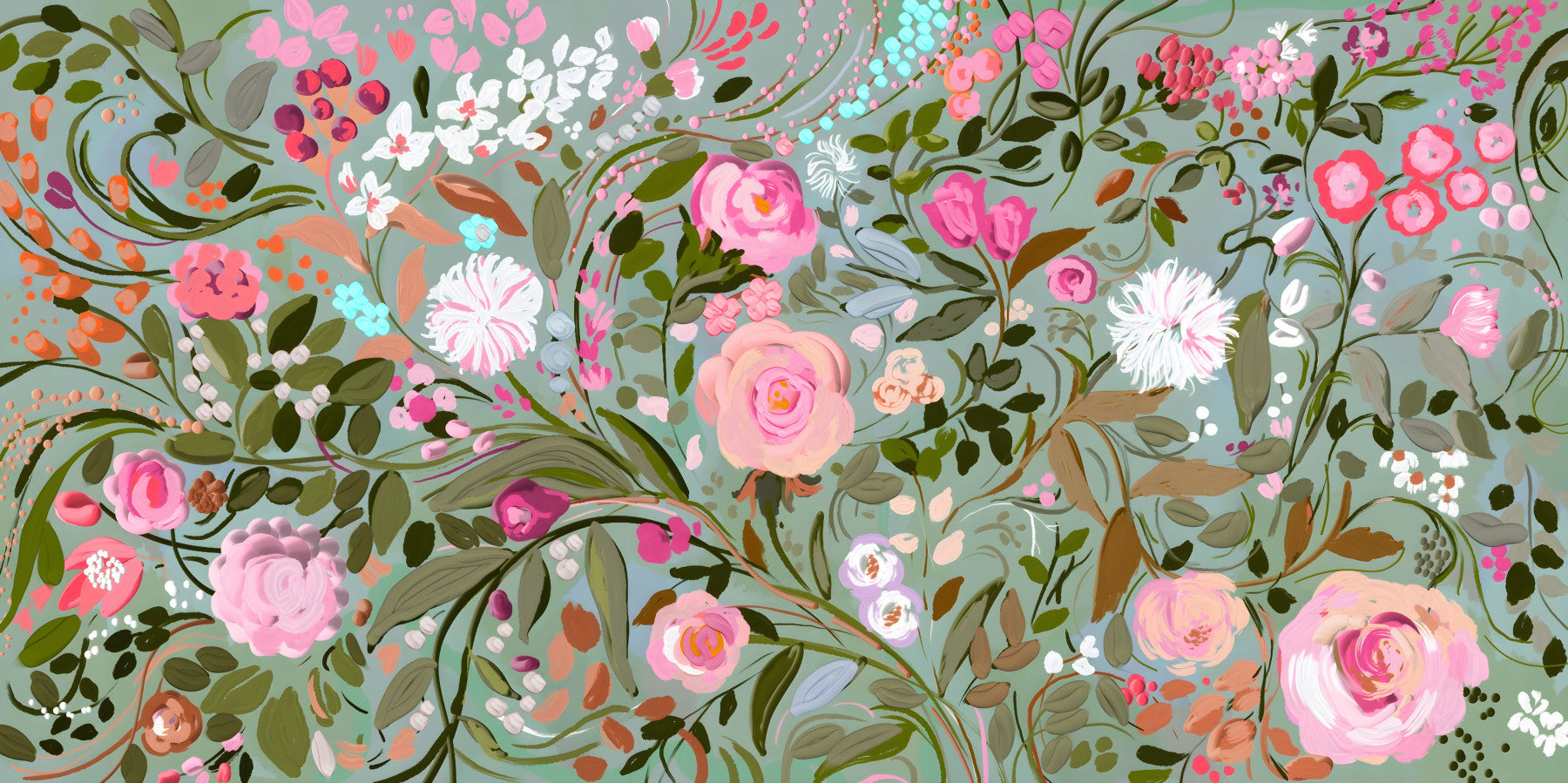 Invite a garden indoors with this charming floral design. Notice the beautiful brushstrokes that give it a hand-painted feel. The muted green backdrop highlights the pink, white, and coral flowers. This wallpaper for walls suits a bedroom, living room, or dining area. Its soft hues and botanical style create a calm, inviting space, working well in Scandinavian or modern farmhouse interiors.