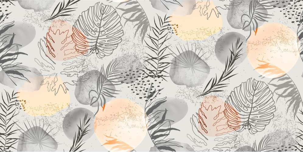 Palm tropical leaves mural in neutral and abstract patterns.