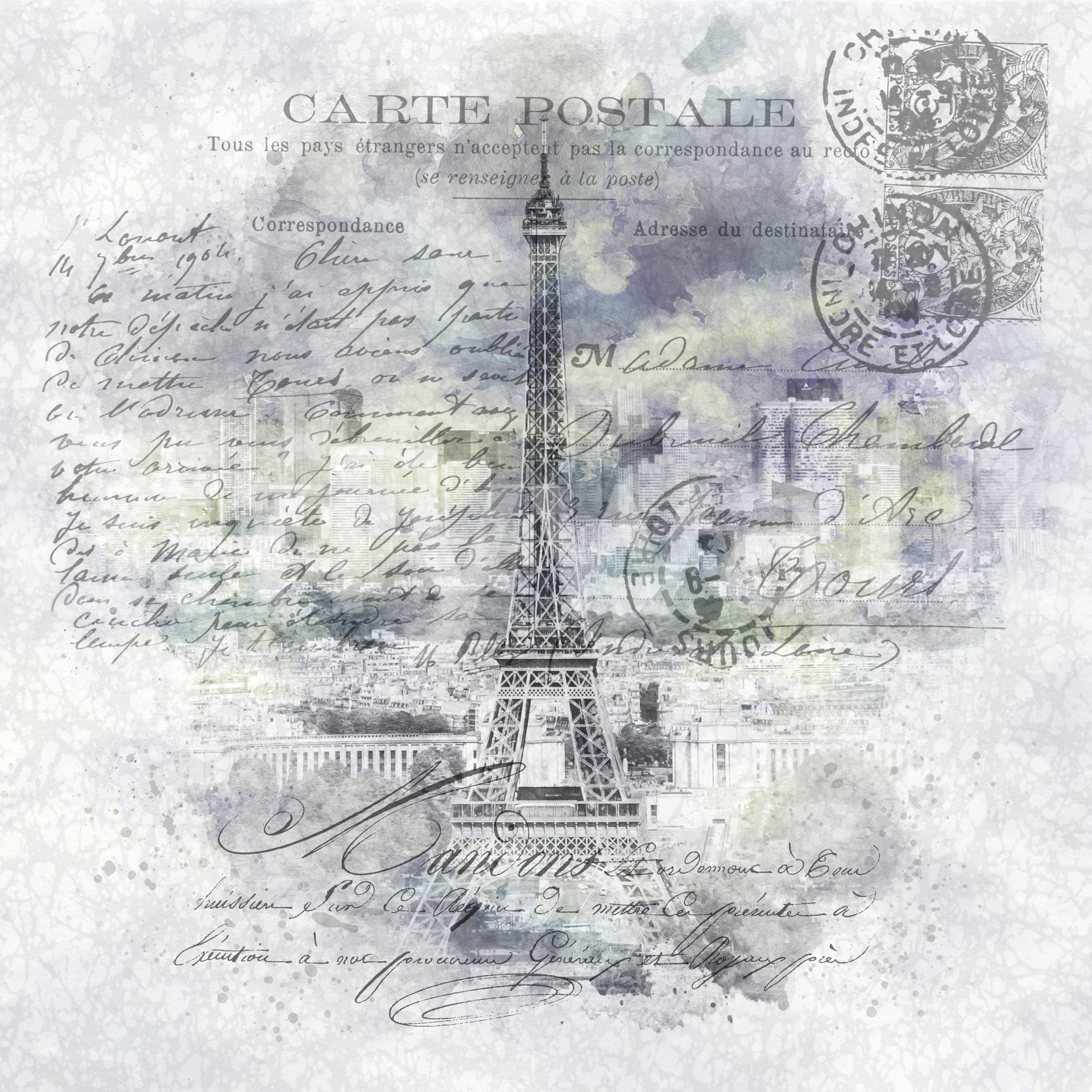 Capture the romantic essence of Paris with this breathtaking collage wallpaper. From the vantage point of the Montparnasse Tower, the city unfolds in a dreamy grayscale panorama, overlaid with the delicate texture of aged postcards and handwritten French script. Vintage postage stamps and faded ink create a nostalgic atmosphere, transporting you to a bygone era of Parisian charm. The Eiffel Tower stands proudly in the center, a timeless symbol of the city's beauty and romance. This wallpaper is a perfect blend of vintage aesthetics and modern design, ideal for adding a touch of Parisian elegance to your digital space.