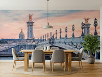 Capture the romantic essence of Paris with this breathtaking wallpaper for walls. The image showcases the Pont Alexandre III under a soft, pastel sky. Golden statues gleam against the pale pink and blue, while the Seine reflects the city's lights. This design adds a touch of Parisian charm to any space. Perfect for a bedroom, living room, or dining area, the wallpaper creates a serene and sophisticated atmosphere. It elevates interiors with a sense of timeless elegance and wonder.