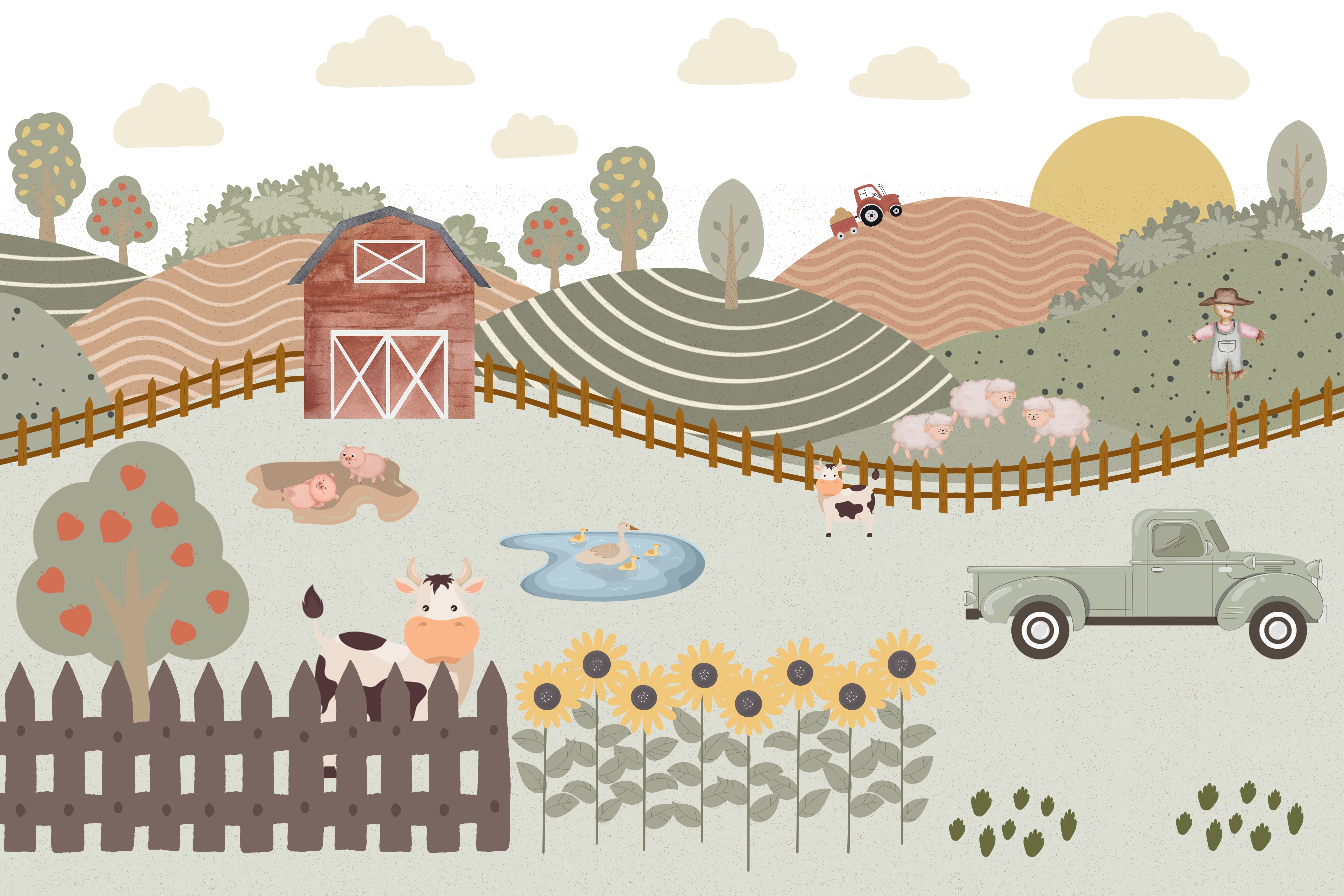 Adorable countryside wallpaper for baby