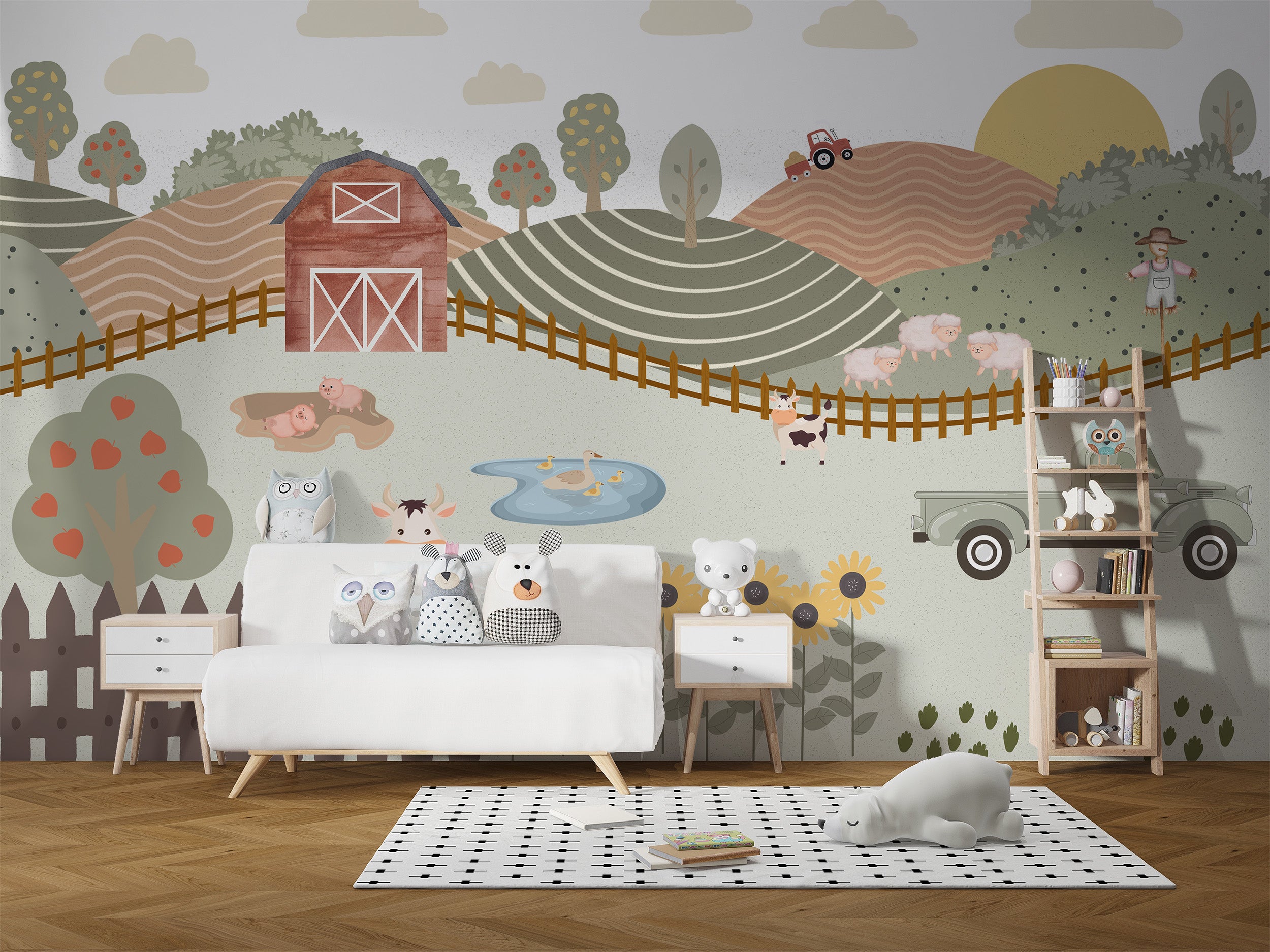 Nursery farm adventure wallpaper print