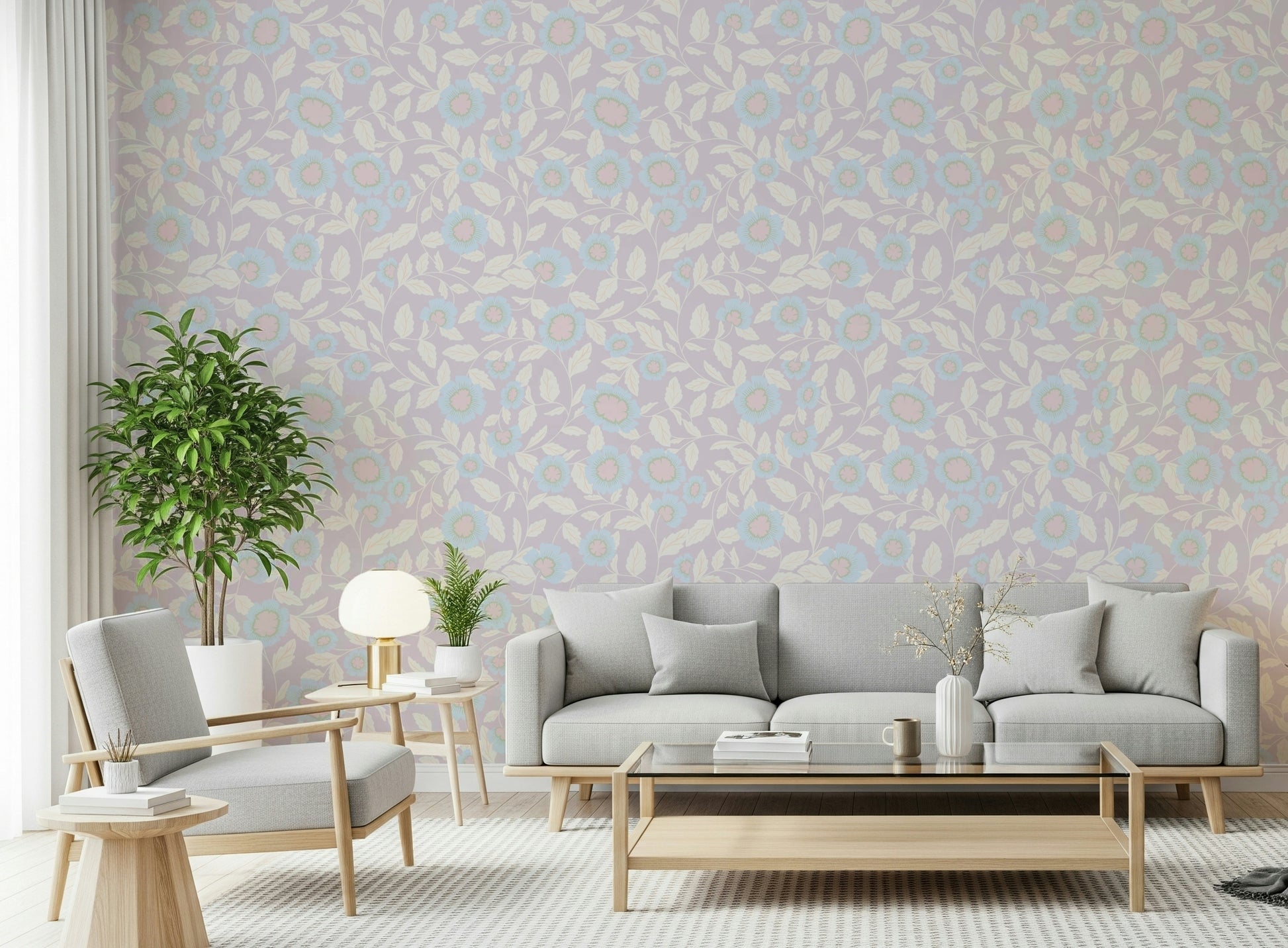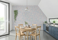 Transform your space with this serene floral wallpaper. Pastel blooms in baby blue and blush pink dance across a soft lavender backdrop, creating a calming and inviting atmosphere. The simple, stylized design brings a touch of nature indoors without overwhelming the senses. This versatile pattern works wonders in bedrooms, nurseries, or even a cozy reading nook. It’s the perfect wallpaper for walls to give living spaces a gentle, sophisticated charm. Elevate your interiors with this harmonious blend of color and design.