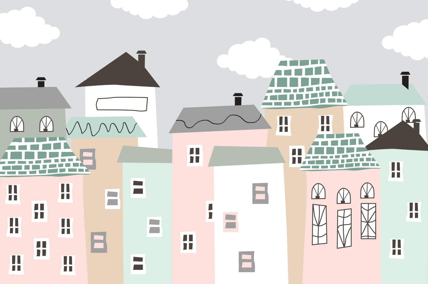 Pastel Houses Town Wallpaper Mural - Giffywalls