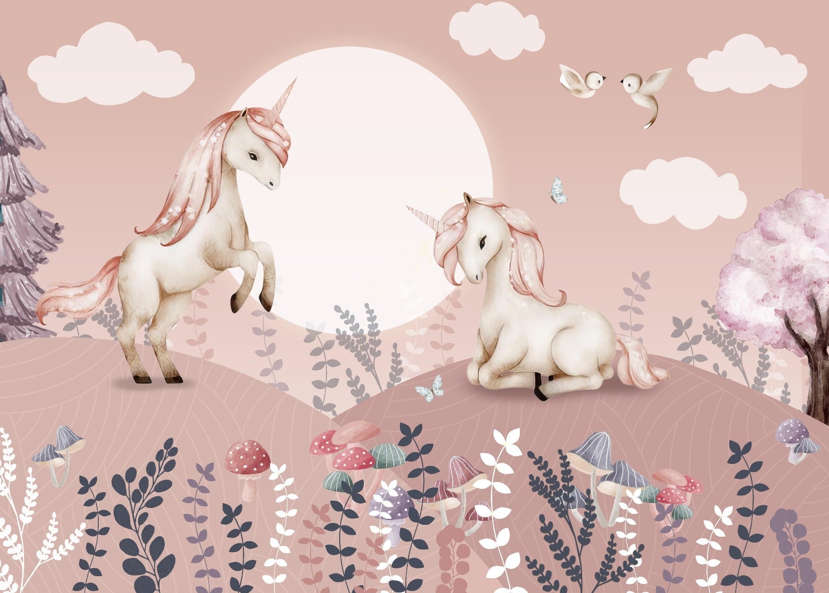 Let our pink Pegasus wallpaper light up a room that should be as playful as childhood. We cannot stop staring at this mesmerizing mural of Pegasus's running over a pink sky in an infinite loop, which is perfect for young minds. Add to each flowing creature one more addition of flow as the design lures you into daydreaming and a never-ending adventure playground growing up. Ingenious wallpaper meant for our girl's room that speaks with the imagination and mirth of childhood times. Made of robust material, this will definitely withstand all your child's everyday discoveries. The Pink Pegasus Mural is more than just a decoration. It is the foundation upon which a safe and fantastical place exists to celebrate the wonder and whimsy of life.