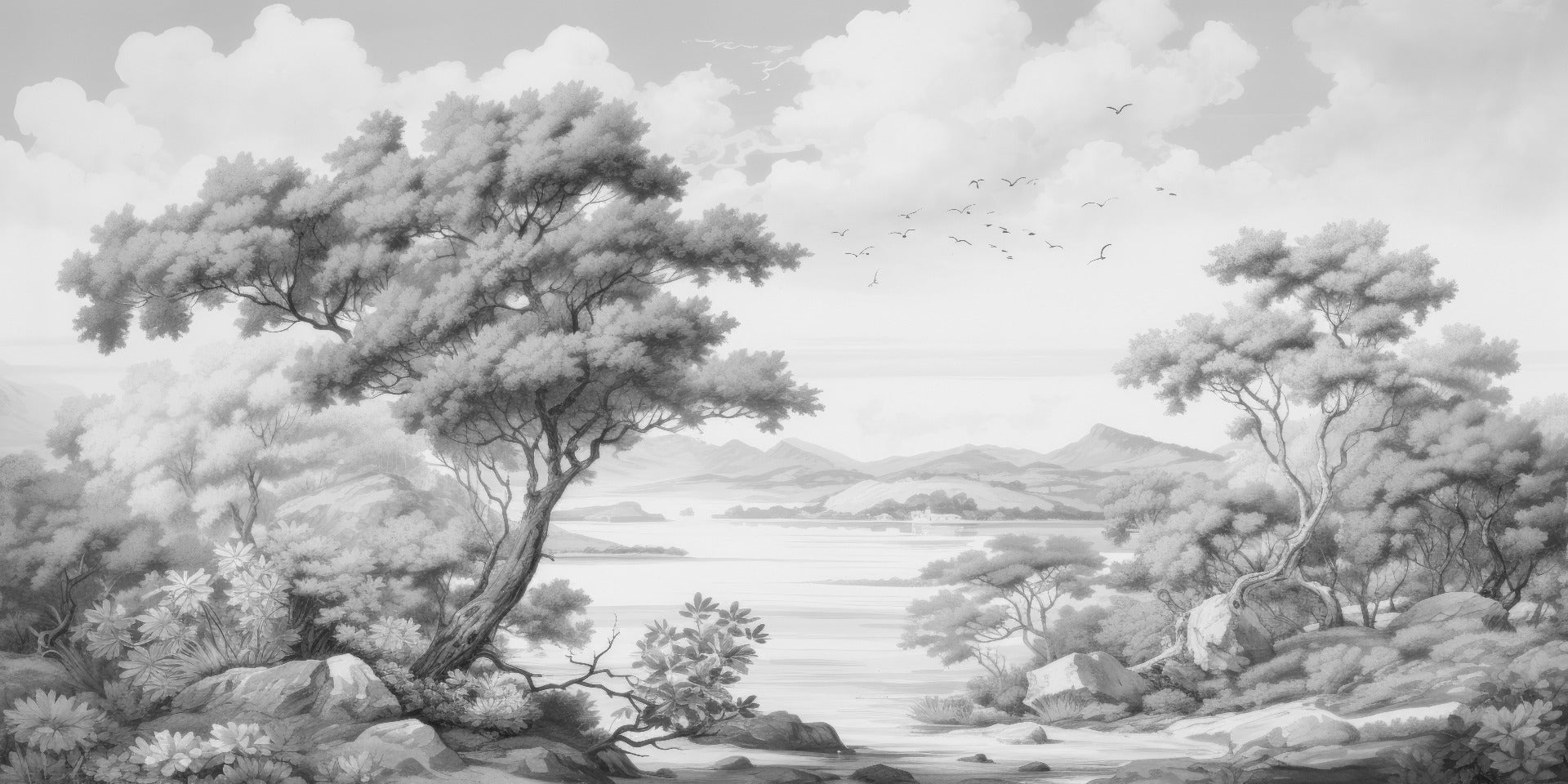 Immerse your interiors in the sophisticated artistry of our Gray Color Sketched Town Wallpaper Mural. This exquisitely crafted gray wallpaper mural paints a serene townscape in elegant gray tones, revealing mountains, an old school bungalow, and lush trees that seem to leap off the wall. The delicate use of light and shadow not only adds depth but also visually expands your room, making it feel more spacious.