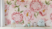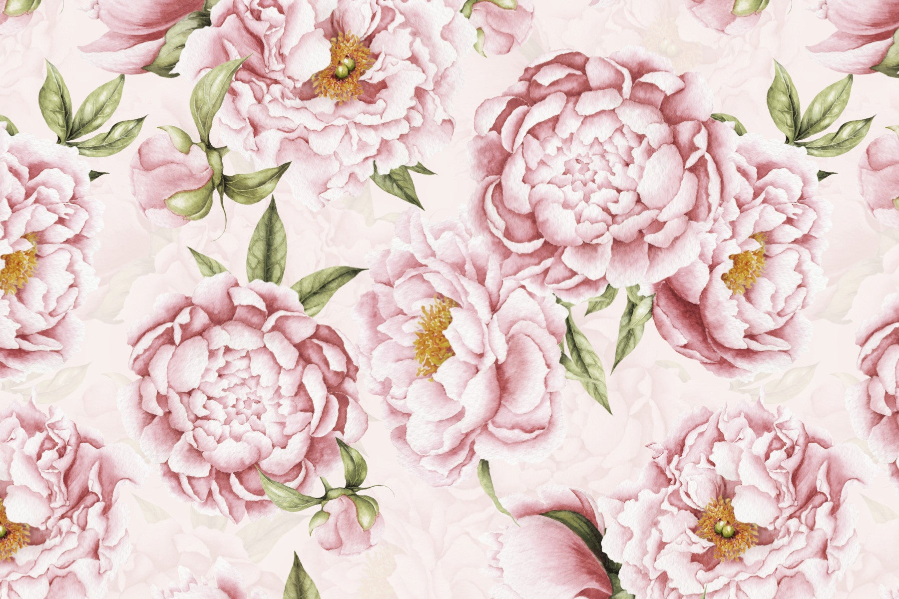 Invite the charm of a delicate garden indoors with this beautiful wallpaper by Uta Naumann for walls. The design features a delightful peony pattern with petals painted in blush pink hues. Green foliage adds a fresh contrast. This floral wallpaper makes a gorgeous backdrop for bedrooms, living rooms, and nurseries. The serene pattern offers a refined touch and complements both minimalist and classic interiors. Elevate your space with this captivating, timeless floral masterpiece.