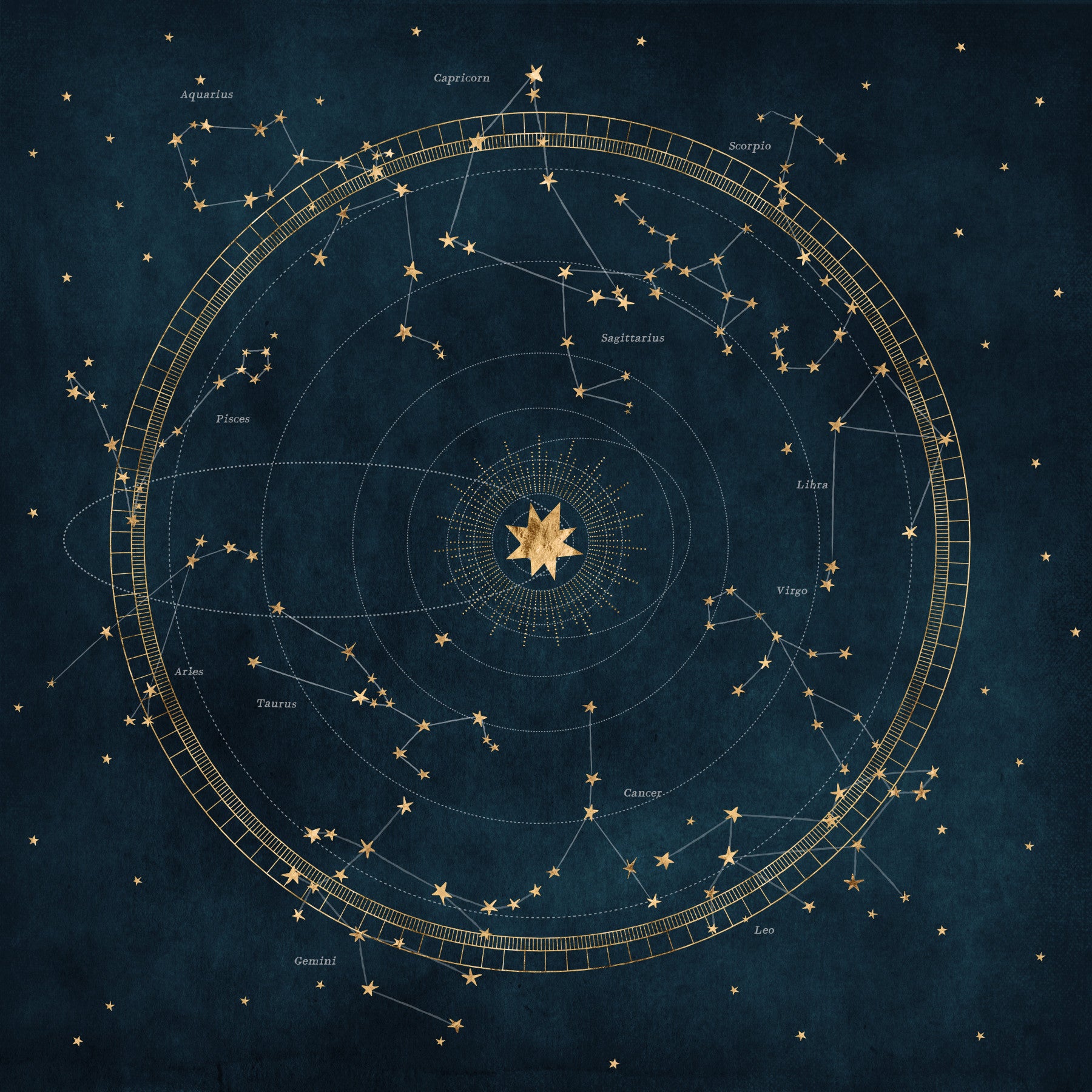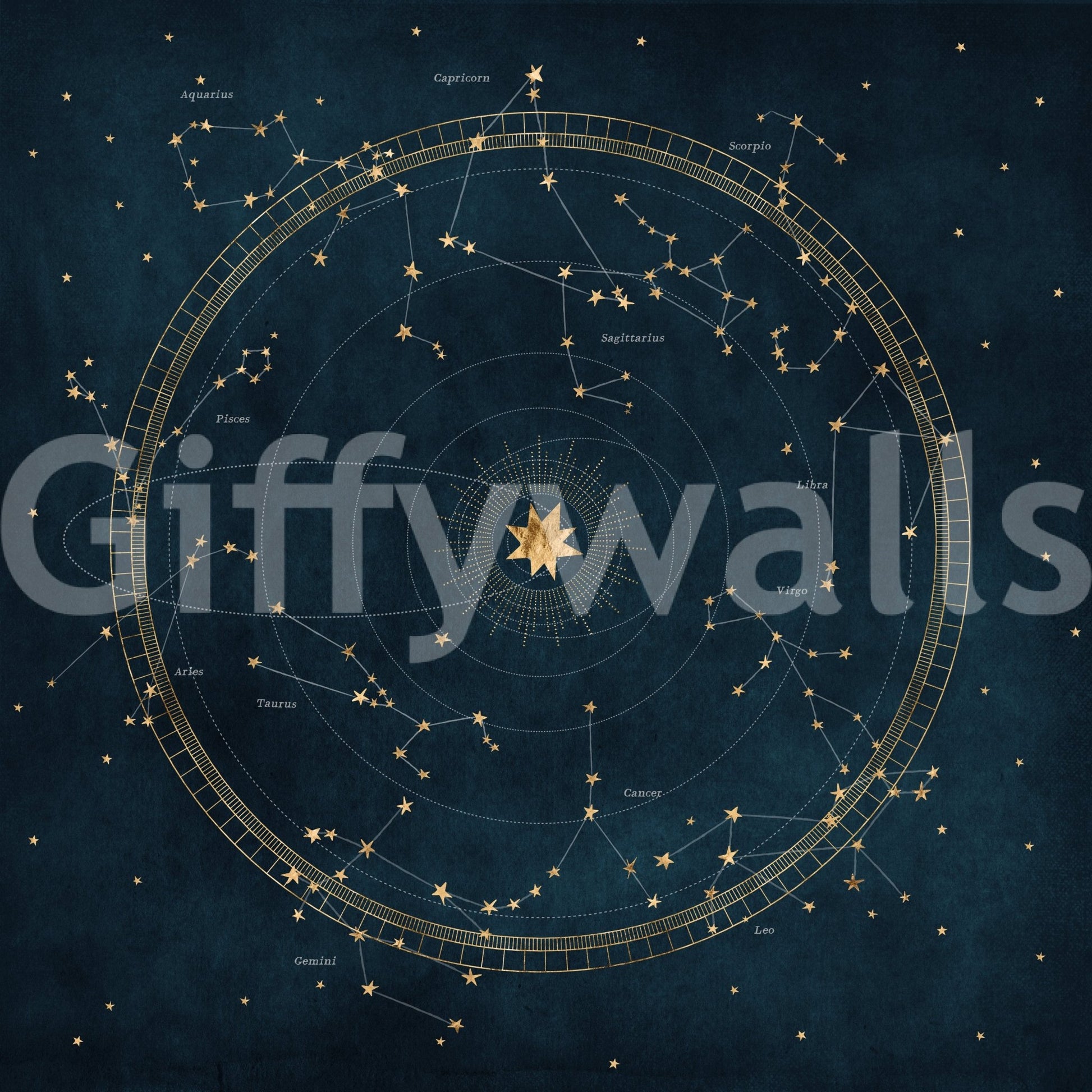 Petrol Astro Wheel mural with celestial map details