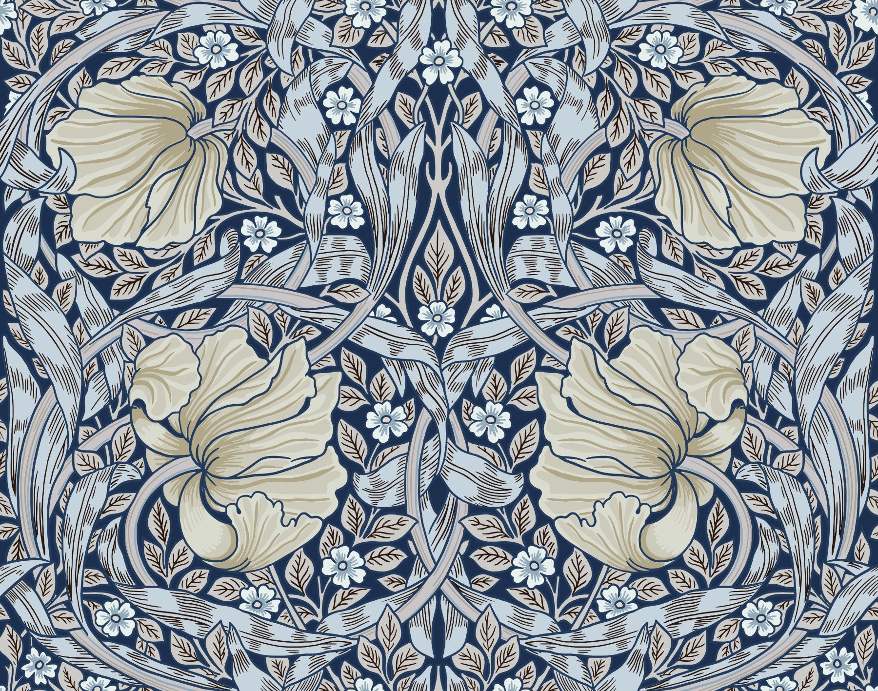 Detailed Pimpernel floral wallpaper by William Morris