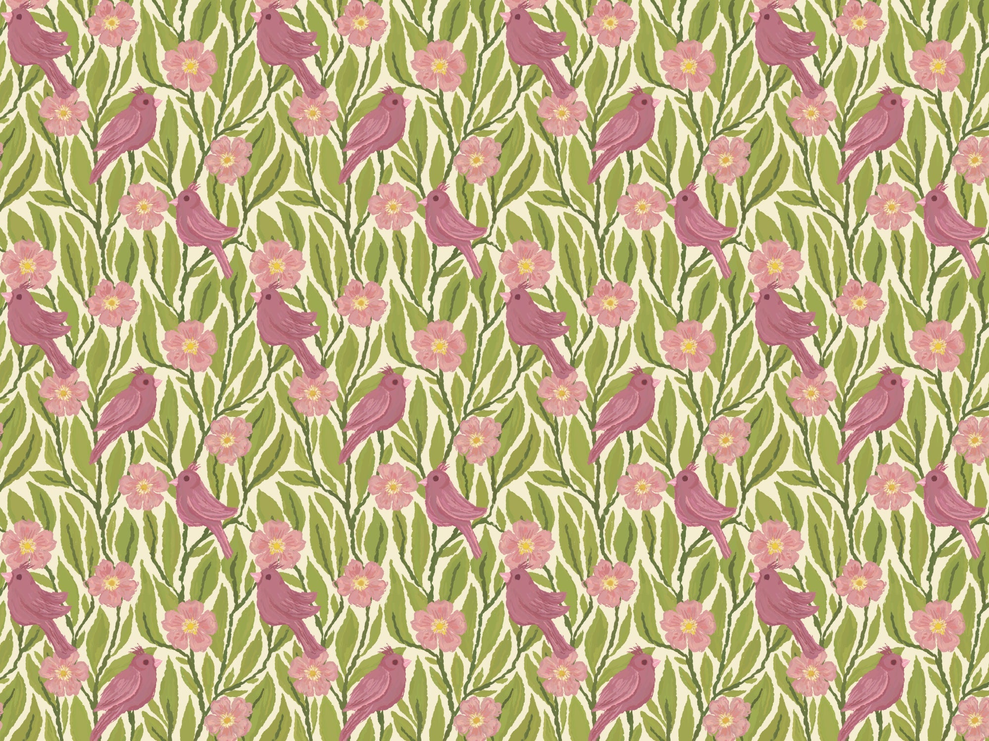 Charming pink birds and flowers wallpaper for a romantic vibe.