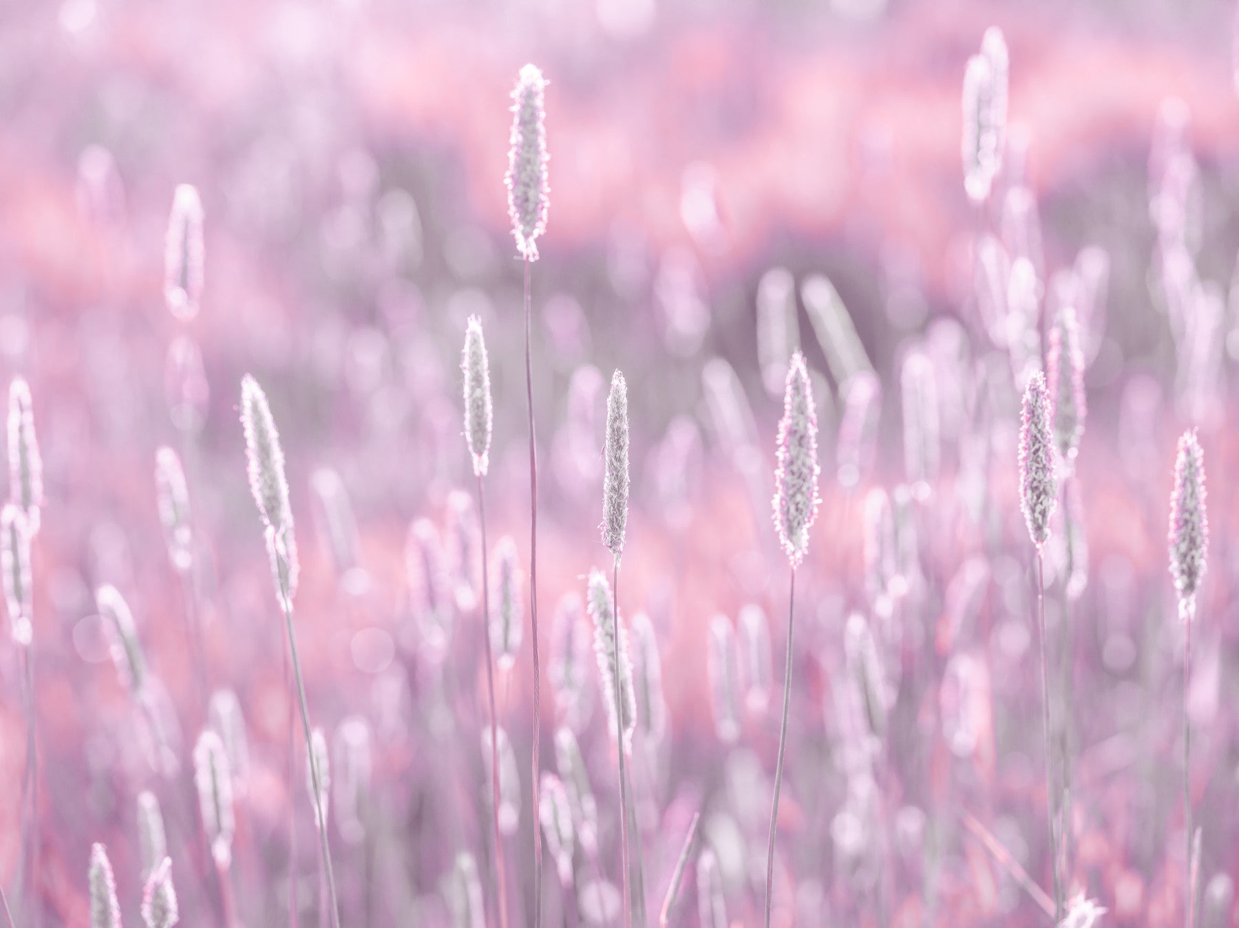 Meadow grass close-up mural in pink tones