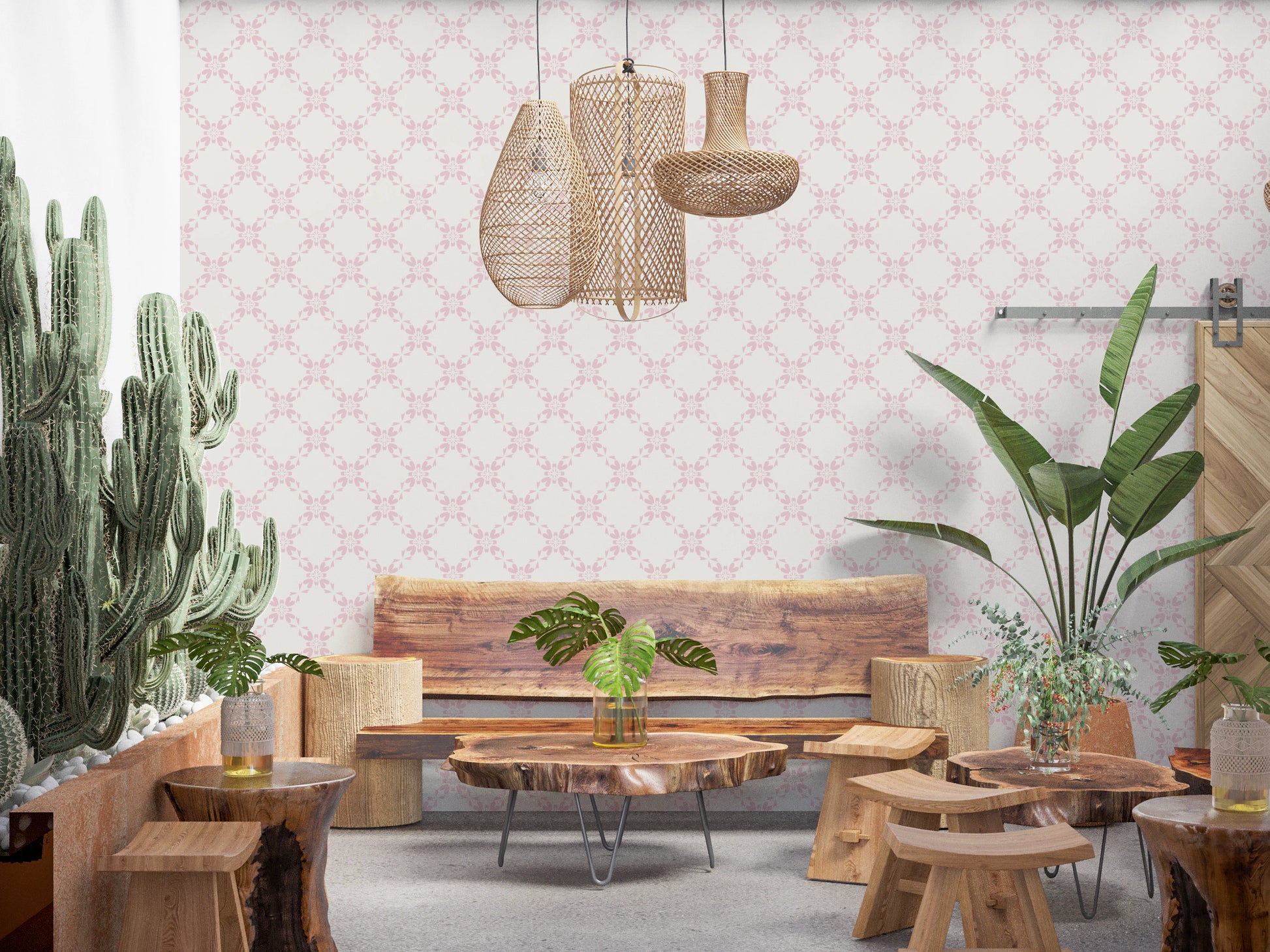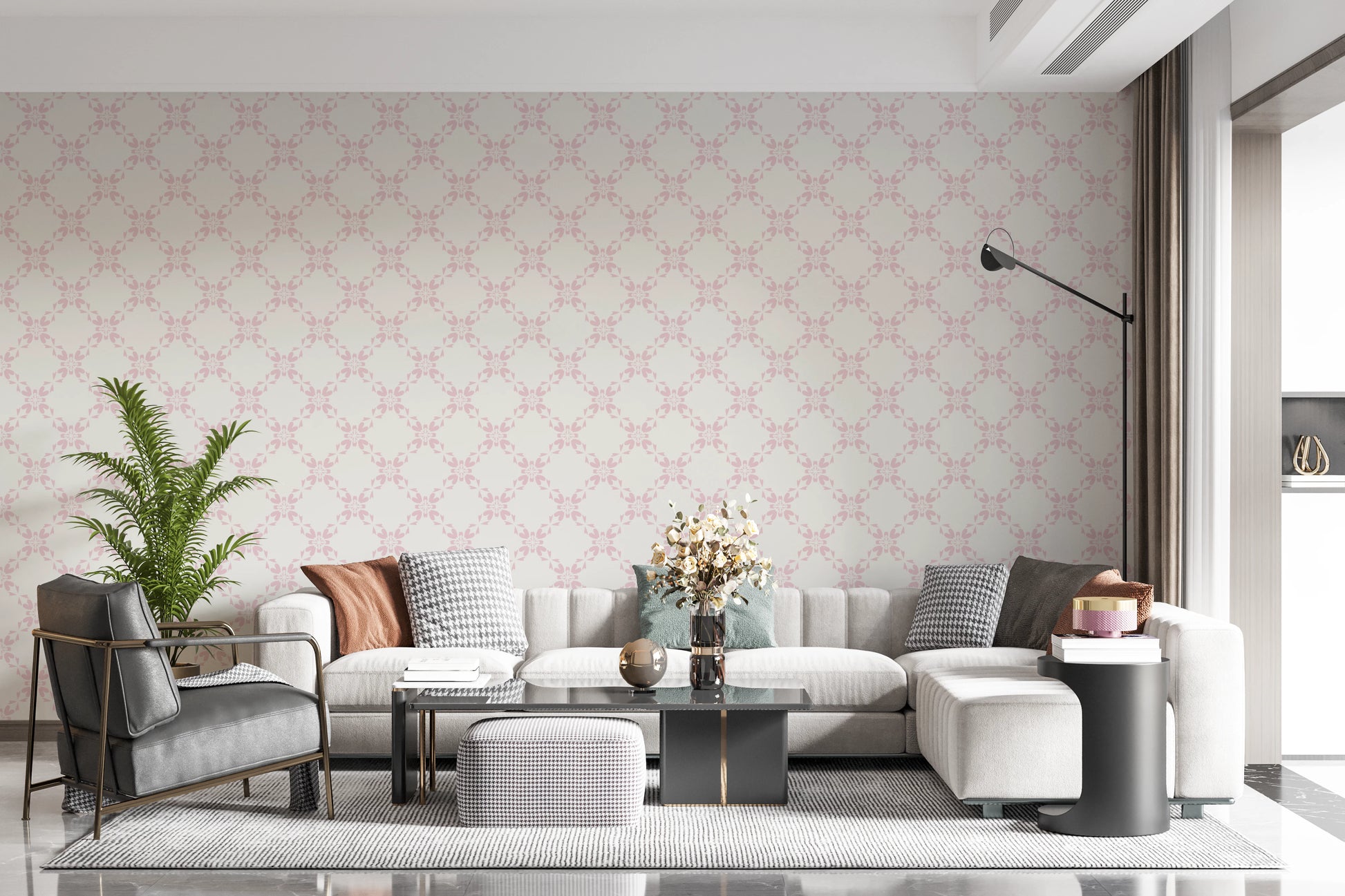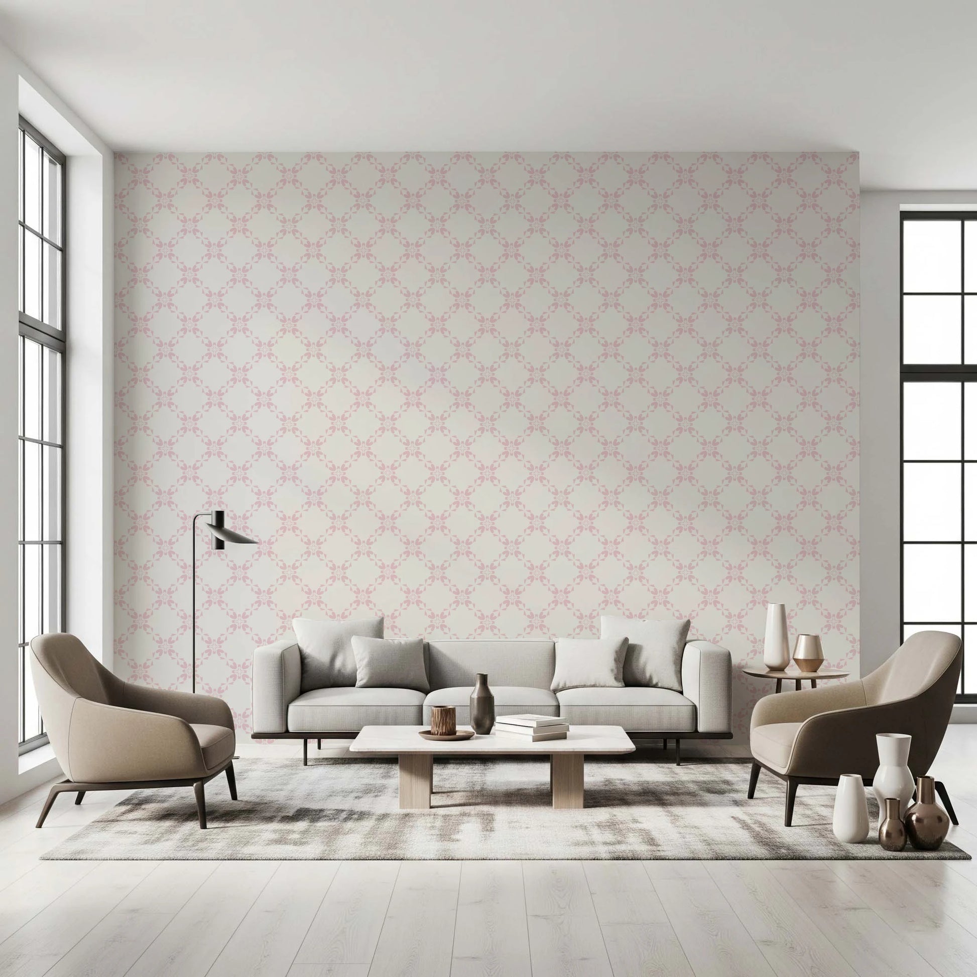 Transform your interior with this elegantly understated wallpaper for walls. Its delicate floral lattice design features soft, blush pink petals set against a neutral, off-white background. This calming and sophisticated wallpaper works wonders in bedrooms, living rooms, and even hallways, adding a touch of refined charm. The repeating pattern creates a harmonious and seamless look, while the gentle color palette brightens spaces. Bring a touch of springtime serenity to your walls and cultivate a tranquil atmosphere. Ideal for creating a calming retreat, this subtle design will complement a variety of décor styles, from modern to classic, with ease.