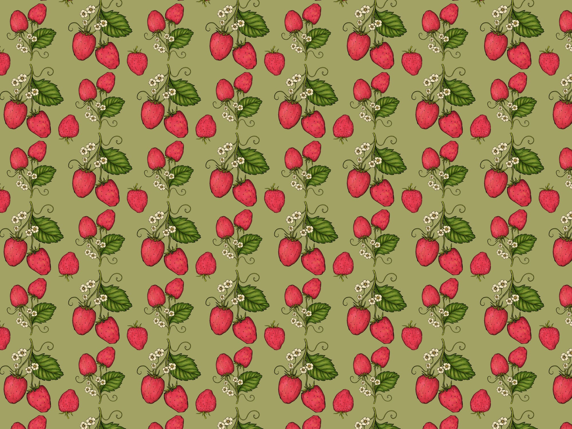 Playful pink strawberry vines wallpaper for a cozy vibe.