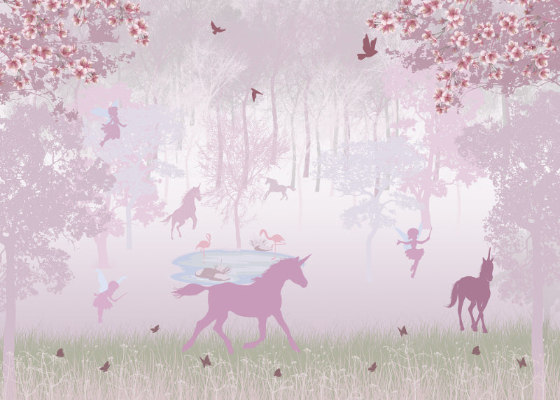 Pink Unicorn in Forest Wallpaper Mural - Giffywalls