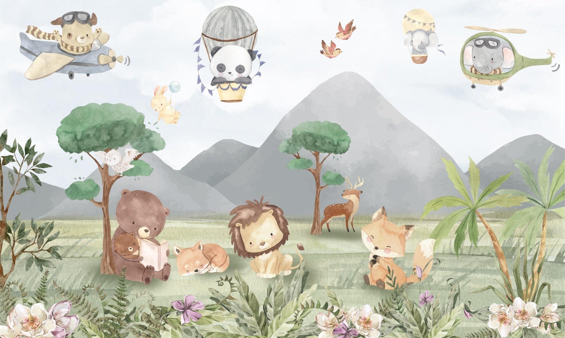 Picture a pre-schooler with a veneer of a magical forest, every surface utilising wall art as an excuse to revel in silliness and nature. Our playful forest mural makes for an animal-only wall design. It depicts the vibrant and animated forest alive to the quiet hustle of animal existence, painted with touches of whimsy and wonder. Infant wallpaper is not just decoration. It is an interactive fairy tale that your child will be exposed to every day until they are old enough to read. The premium quality speaks for our program to create something beyond an impressive piece that will stand the test from childhood joys.