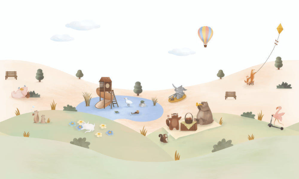 Kids wallpaper for animal garden mural, make your kid's bedroom look like a storybook. The mural does a great job setting the scene of an animal-filled garden and is the perfect background for your Kinder's everyday storybook. Not just a backdrop, but an interactive play that teaches unlike anything else. Ideal for kids and playful souls who want a little fun with learning, this design is about a carefree paradise. It is perfect for families in a challenging game pace and withstands the wear and tear of active play with peel-and-stick wallpaper. Look at this collection and transform your child's room into an interactive environment for learning.