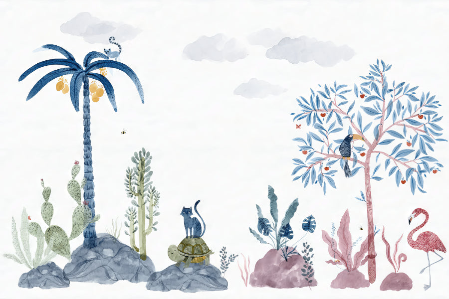 Whimsical jungle-themed wallpaper featuring wildlife design.