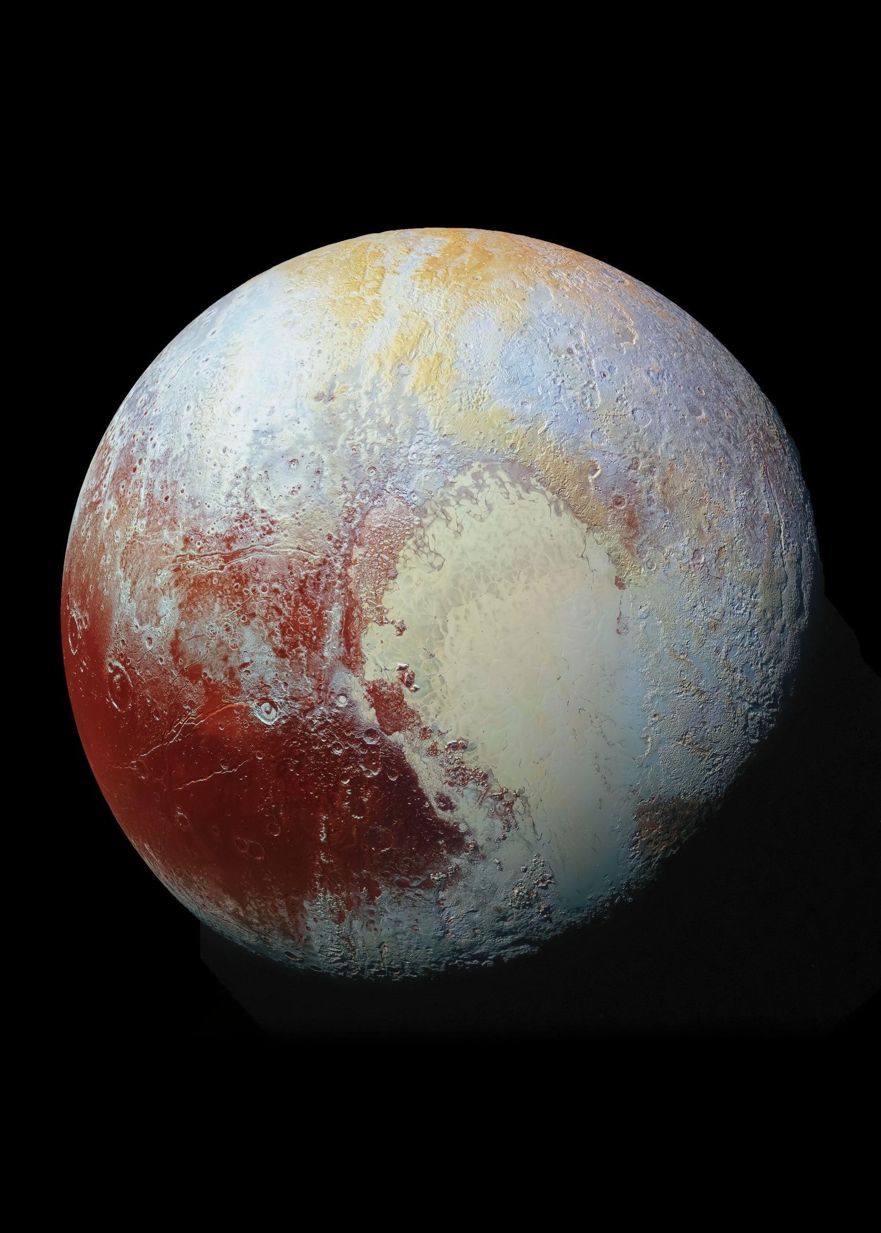 Bring the mysteries of space into your home. This wallpaper for walls features Pluto in exquisite detail against a stark black backdrop. The colors blend from rusty reds to icy blues and soft yellows, creating a tranquil but intriguing effect. Ideal for a home office, bedroom, or living room, this design sparks curiosity and wonder. Its striking visuals complement modern or minimalist interiors, adding depth and character to the space.