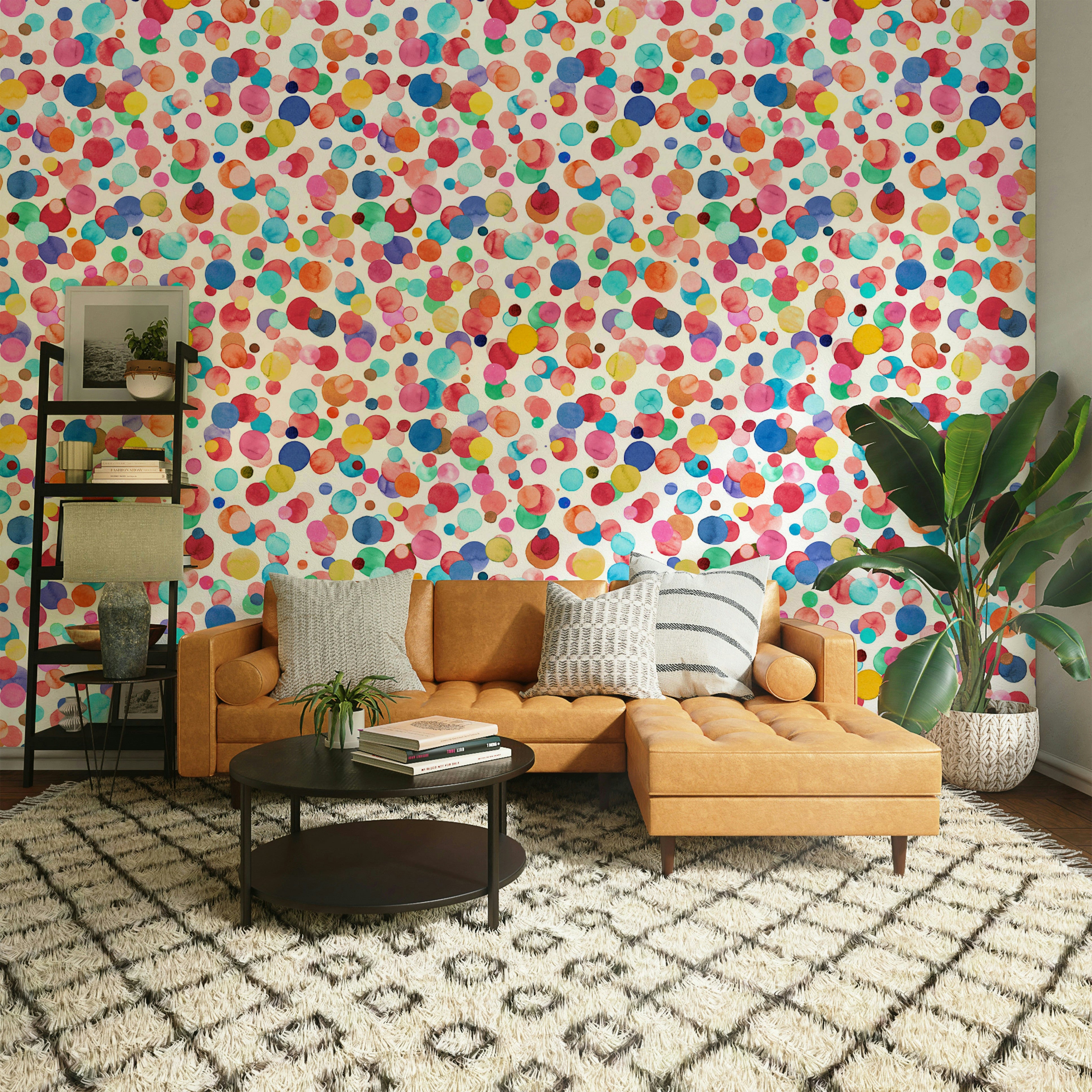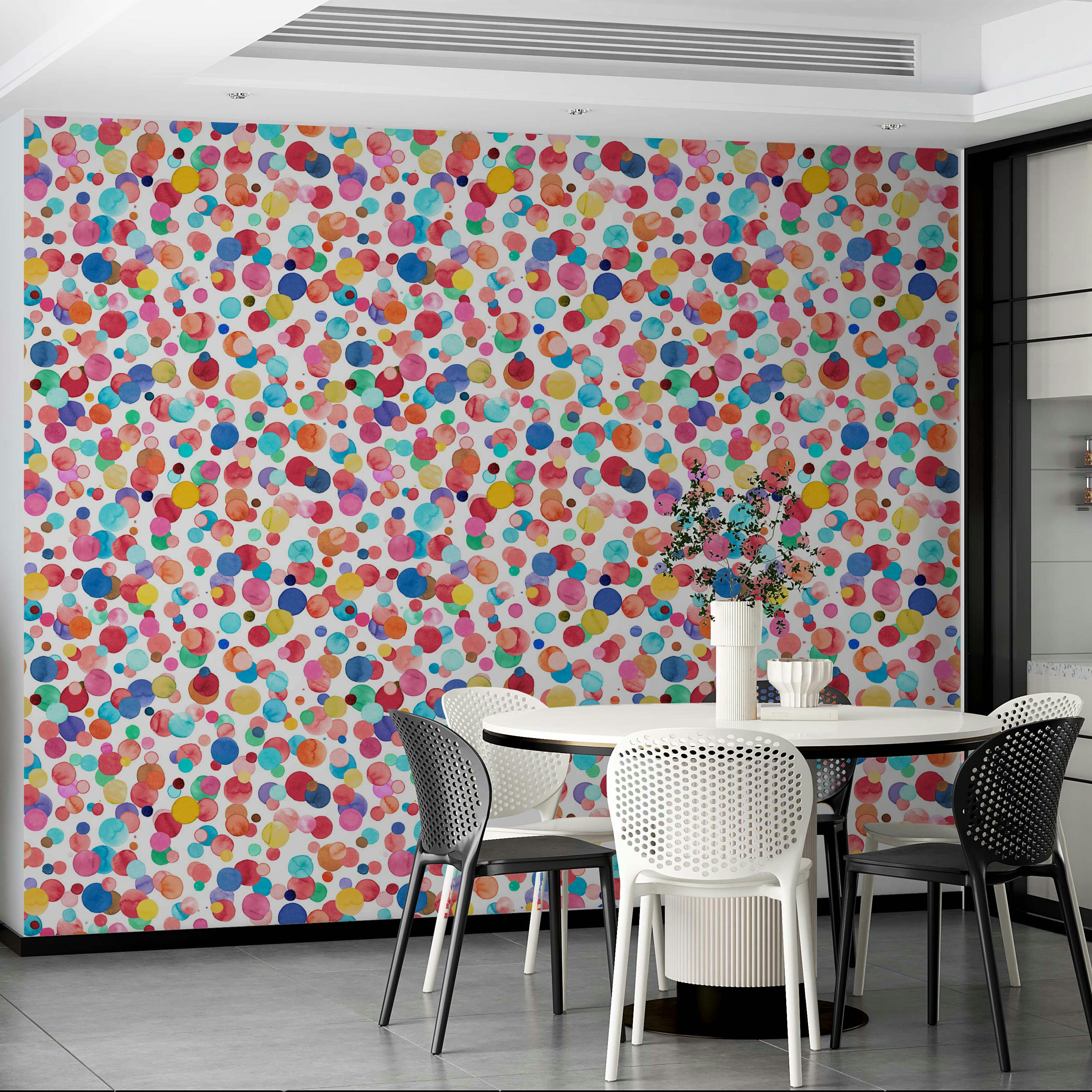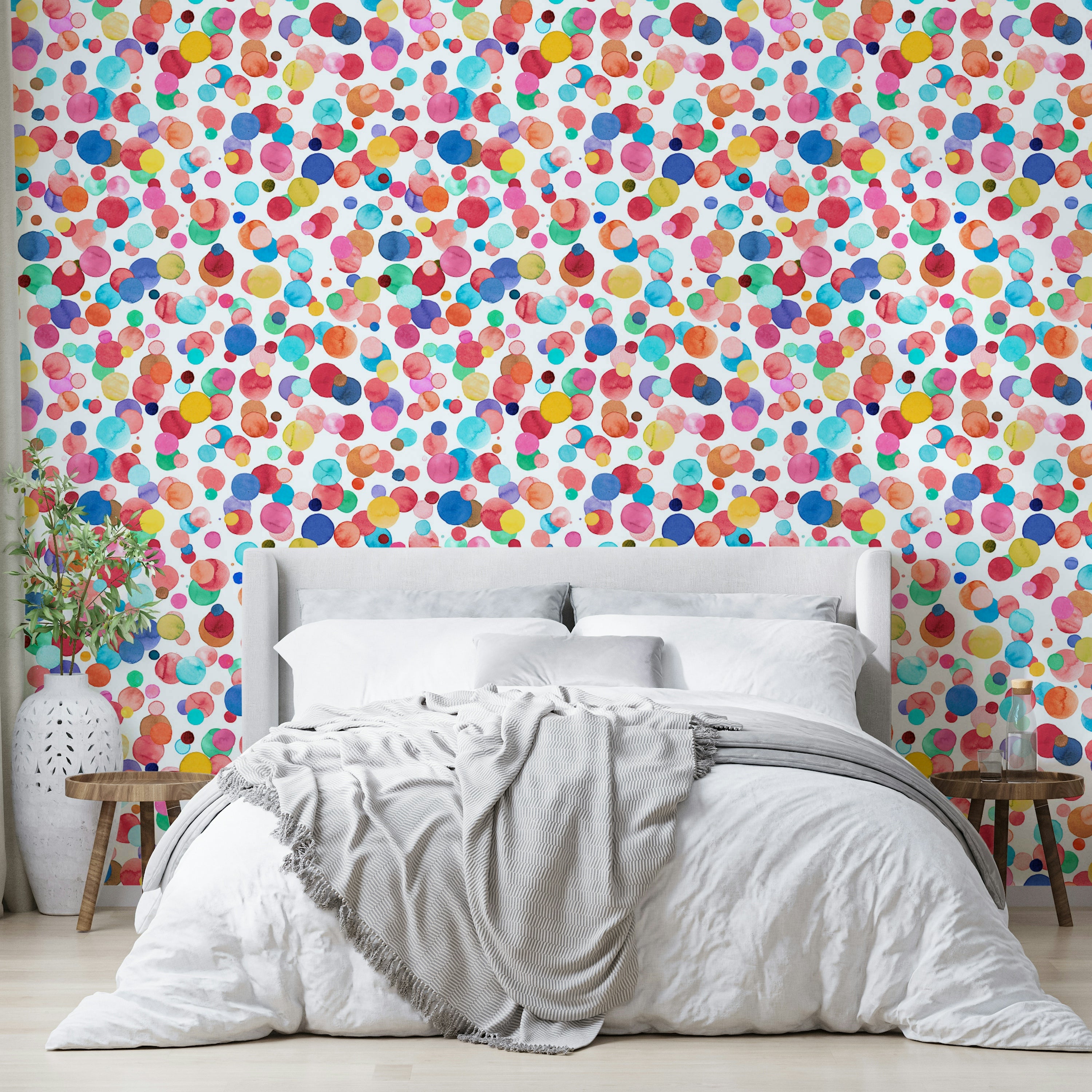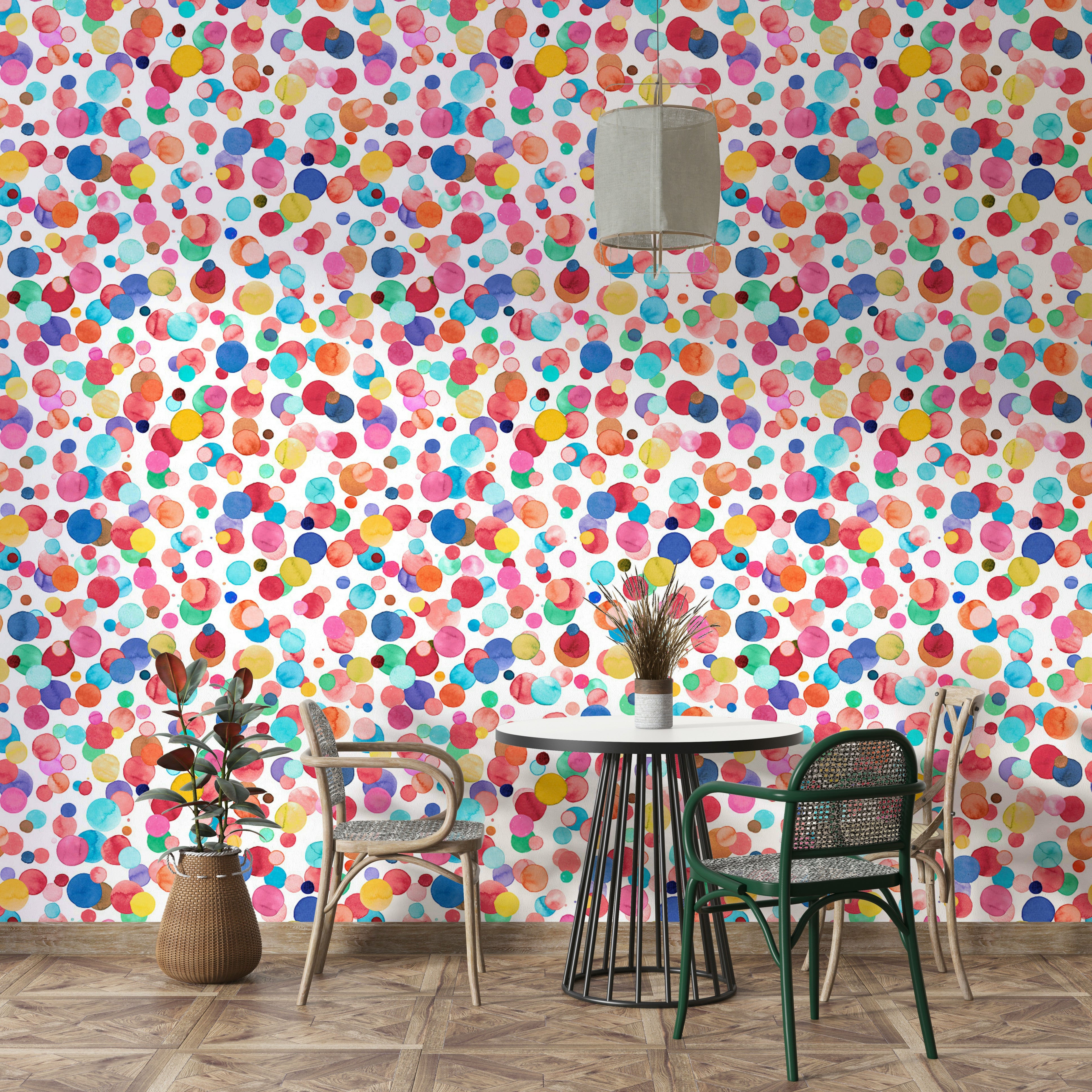 Polka Dots Watercolor Multicolor Wallpaper⁠