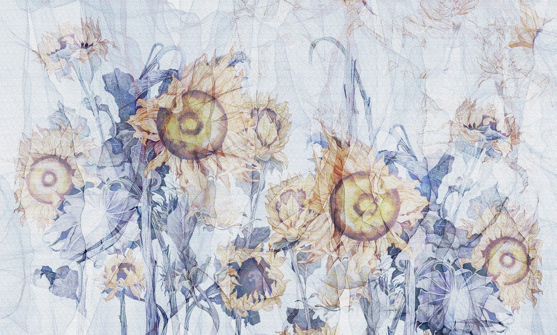 Artistic Blue Yellow Sunflower Wallpaper - Giffywalls