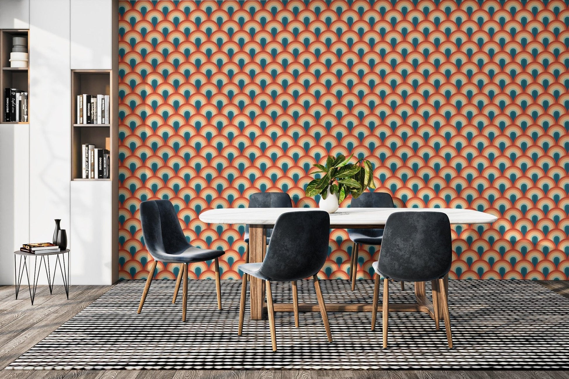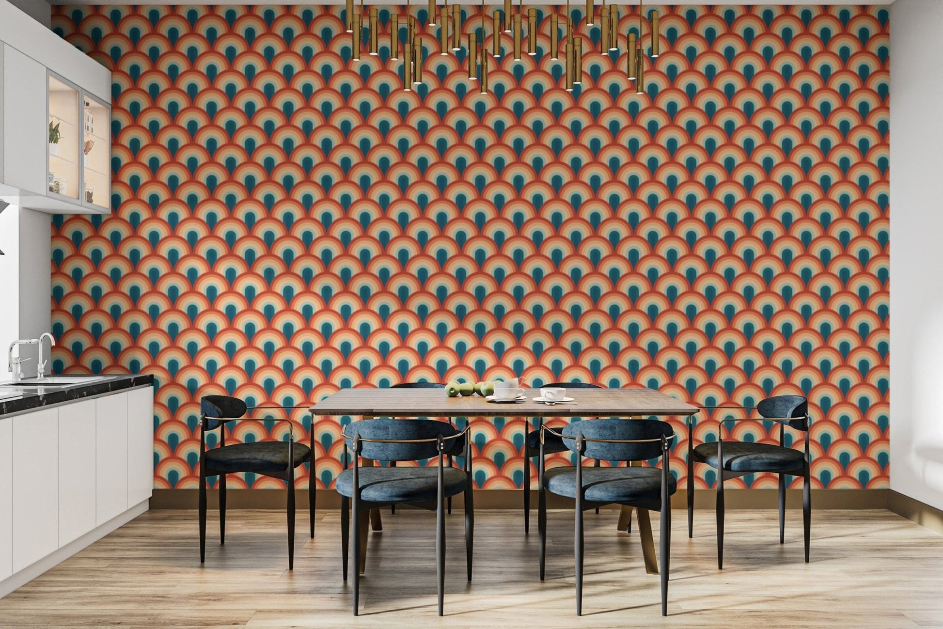 Step into the glamorous world of Art Deco with Radiant Rhythm Wallpaper. This eye- catching design features bold, repeating geometric shapes in vibrant tones of orange, teal, and gold. The stretch- inspired aesthetic brings a sense of complication and antique charm, making it perfect for accentuation walls in ultramodern innards. Whether you are a addict of the roaring twenties or simply love dateless, elegant patterns, this wallpaper is a stunning addition to any swish space.