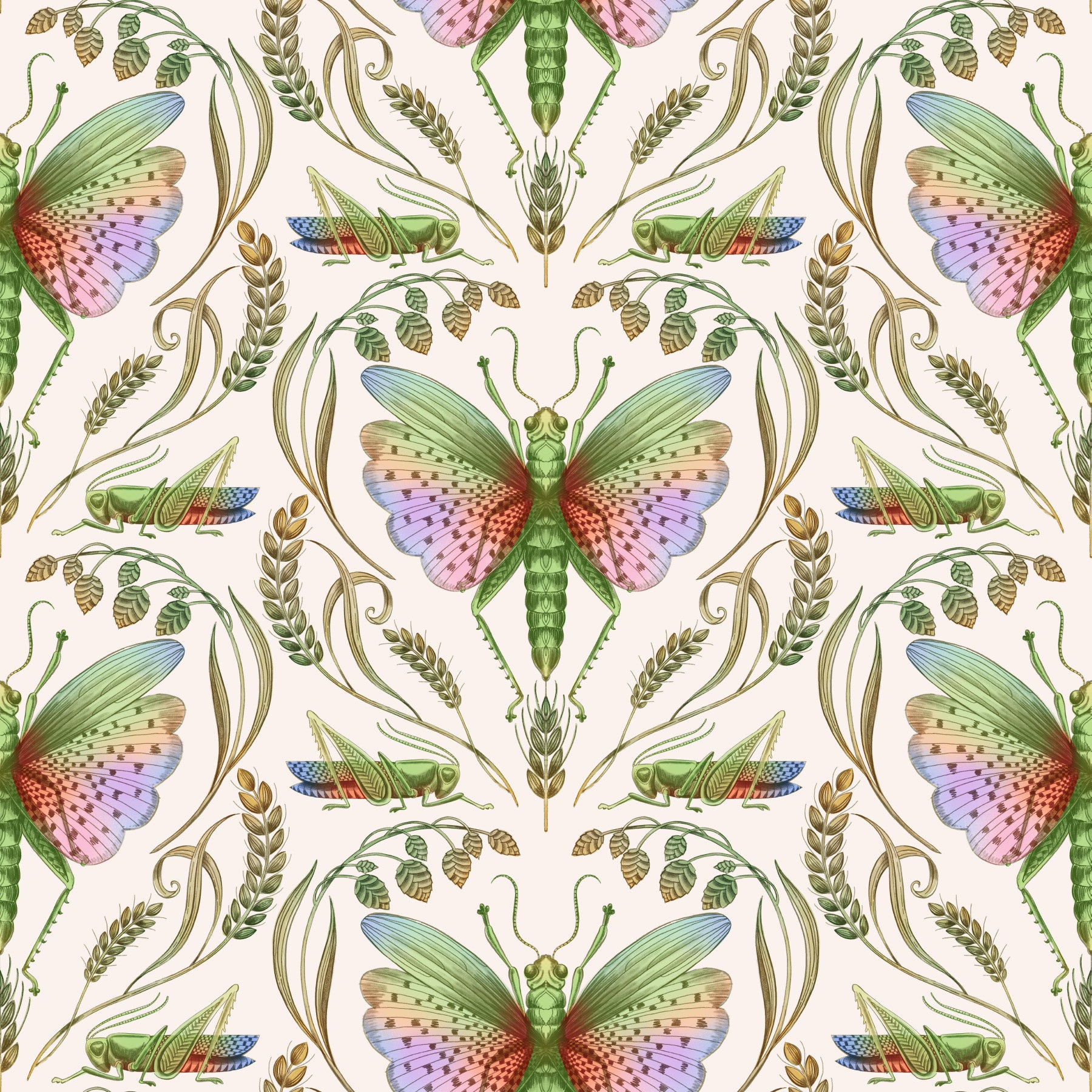 Rainbow Grasshopper Damask light Wallpaper⁠