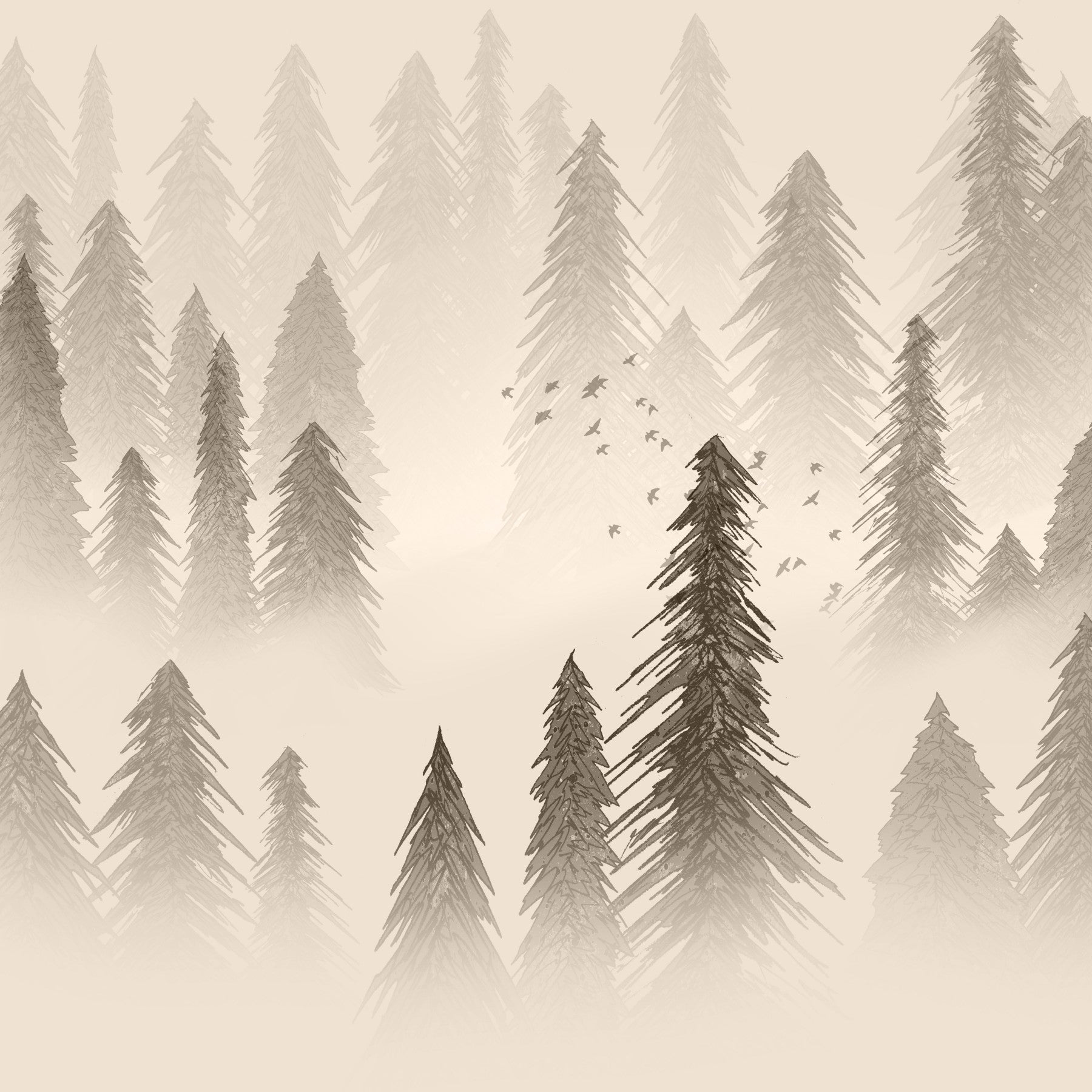Dense forest wallpaper in sepia finish