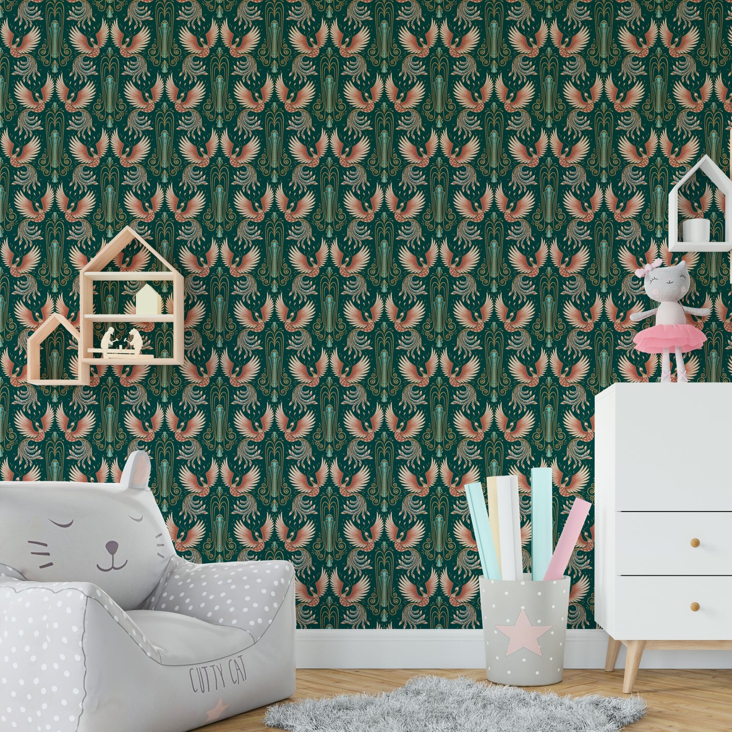 Embrace transformation and renewal with a stunning design featuring the rebirth of a phoenix. This captivating wallpaper brings vibrant colors and intricate patterns to your walls, creating a serene yet striking environment. Perfect for adding a touch of mythology and inspiration to your home, it's ideal for creating a focal point in any room. Let your space resonate with the powerful symbolism of rebirth and beauty, making every moment at home feel truly special.