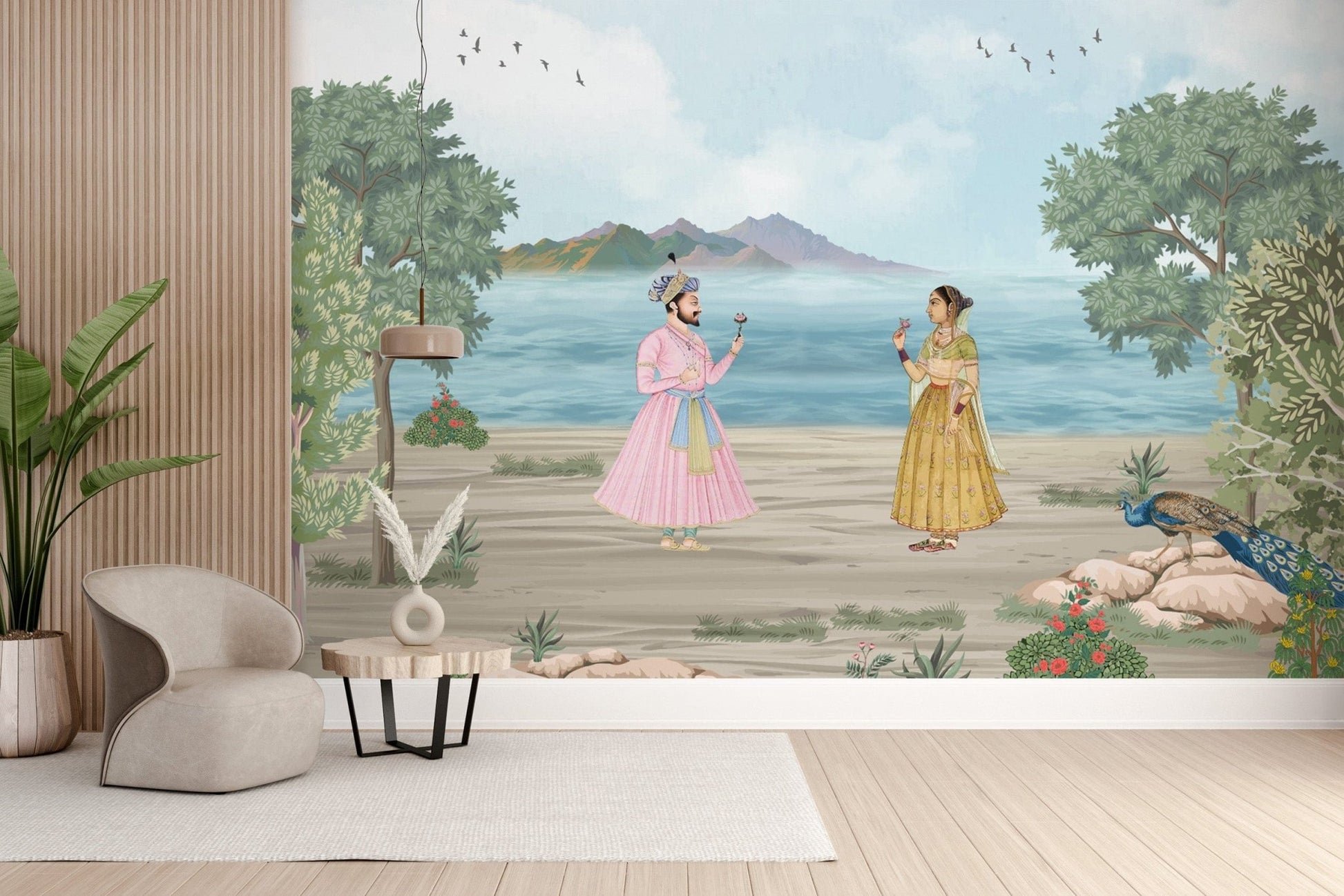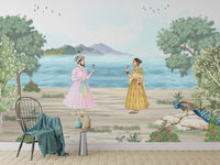 Step into a world of timeless elegance with Regal Romance Mughal Wallpaper, a masterpiece inspired by India’s royal heritage. Featuring a noble Mughal couple in a serene riverside setting, this design captures the essence of romance, tradition, and artistry. The intricate detailing, rich textures, and soft pastel hues evoke the grandeur of ancient courtly love. Perfect for creating a refined ambiance, this wallpaper adds a regal charm to living rooms, bedrooms, or heritage-inspired spaces. Let history and romance blend seamlessly on your walls, bringing the splendor of Mughal artistry into your home with grace and sophistication.