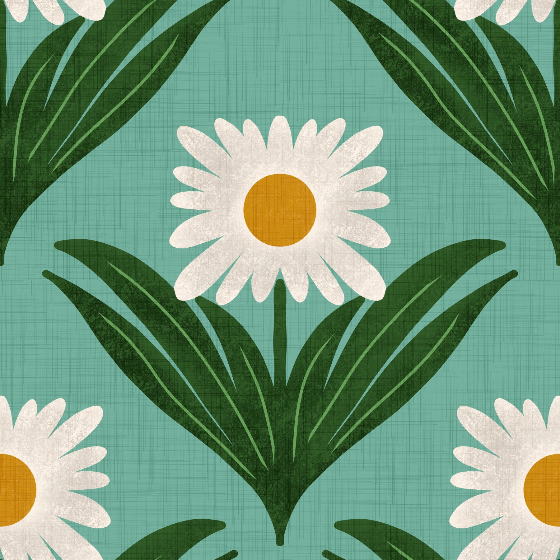 Retro 70s Daisy Floral on Retro Blue - Mod Flower Wallpaper⁠ Wallpaper⁠