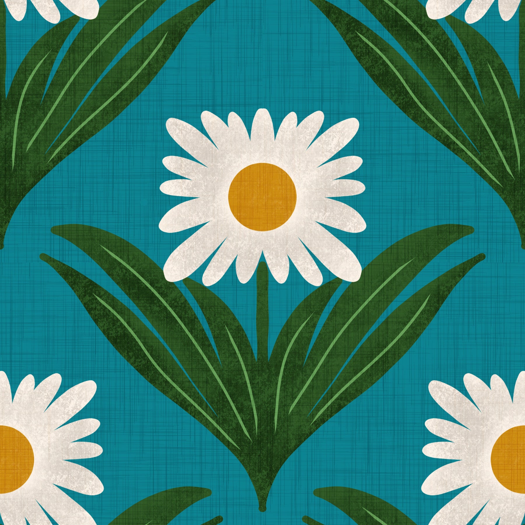 Retro 70s Daisy Floral on Teal - Mod Flower Wallpaper⁠ Wallpaper⁠