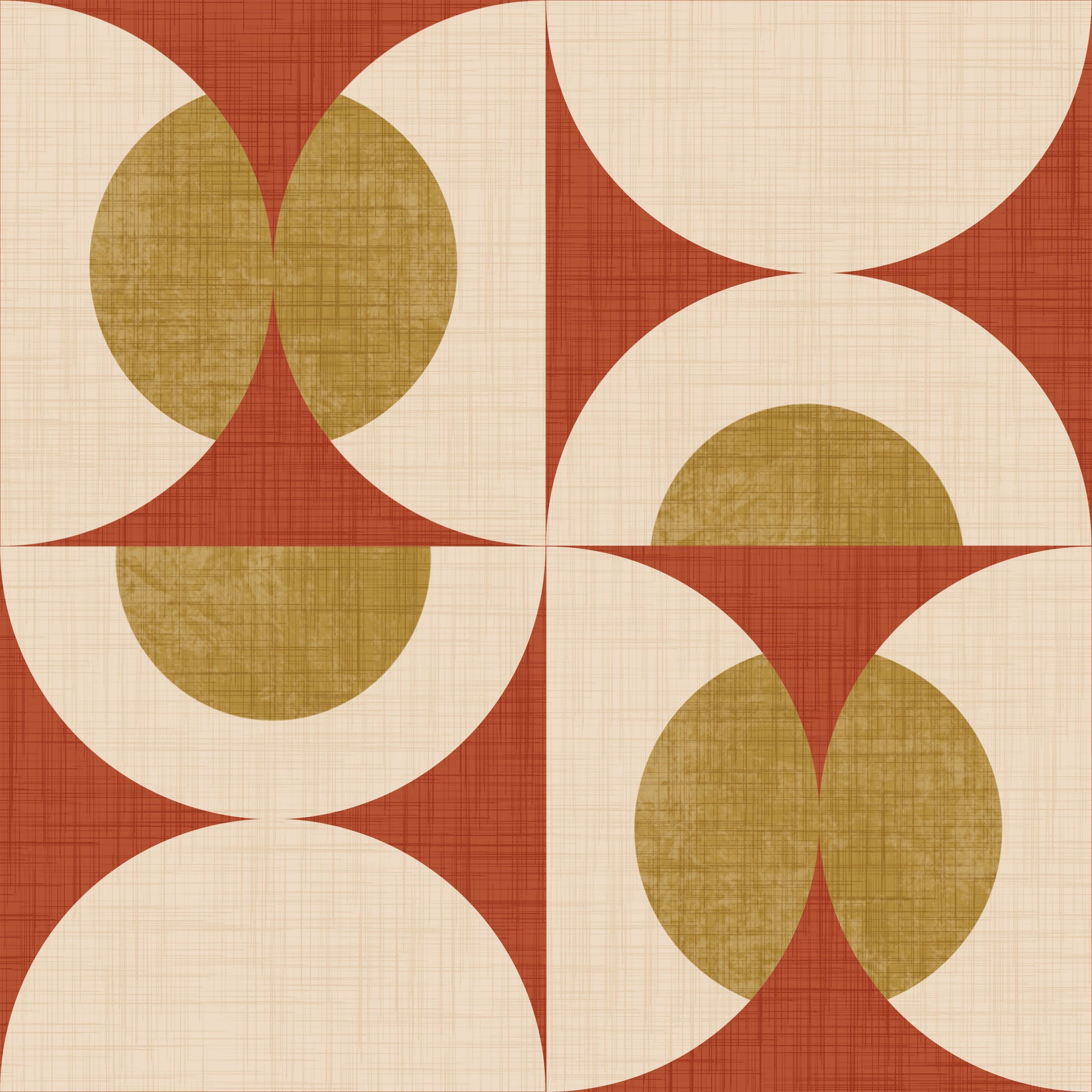 Let the Retro Arcs Wallpaper transport you to a secluded, tropical paradise where the sun always casts a warm, golden glow. This design captures the vibrant, sun-drenched feel of mid-century modern aesthetics with its striking terracotta and deep mustard geometry. The interlocking circular pattern offers a sophisticated yet playful backdrop for any room. Perfect as a statement piece, this wallpaper mural transforms your space into a chic getaway. Enjoy the easy installation of peel and stick wallpaper and the lasting impact of quality wallpaper for walls. Refresh your home's narrative and embrace the bold geometry today.