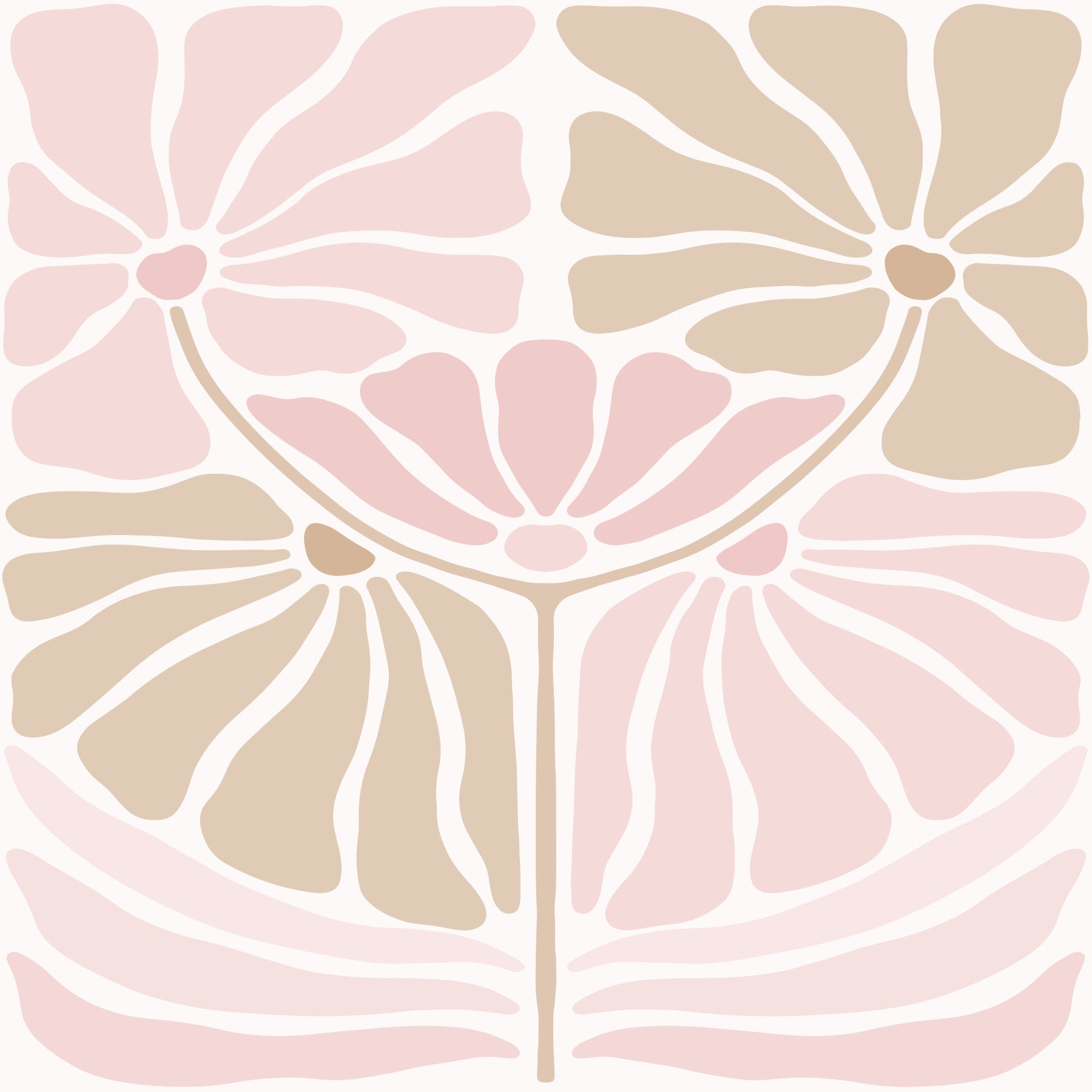 This wallpaper features a captivating abstract floral design in soft blush pink and beige tones. The stylized flowers, with their organic, hand-drawn feel, create a sense of serene beauty. The subtle color palette evokes feelings of calm and tranquility, making it ideal for bedrooms, living rooms, or any space needing a touch of understated elegance. The seamless pattern ensures a cohesive and visually pleasing effect across any wall. The simplistic design is easily adaptable to a variety of interior styles, adding a touch of modern artistry without overwhelming the space.
