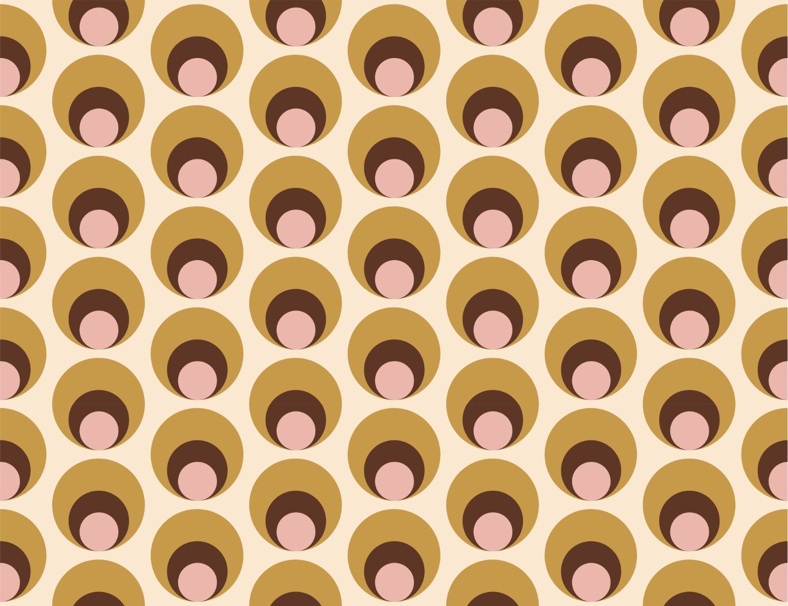 Add a dash of ageless elegance to your environment with the vintage dots apricot beige wallpaper backdrops. This fabulous wall art combines mid-century modern and classic styles with your home interior. The wallpaper features a mesmerizing pattern of nested circles in warm hues, mashed mustard yellow, chocolate brown, and pale pink—set against a soothing beige backdrop. All of these concentric trios are precisely placed in a tight, diagonal array to surround your room in a geometric choreography that is both classic and surprisingly modern. Perfect for creating an inviting atmosphere, these retro murals are more than just beige wallpaper; they're a statement piece that transforms any room into a cosy haven of stylish nostalgia.