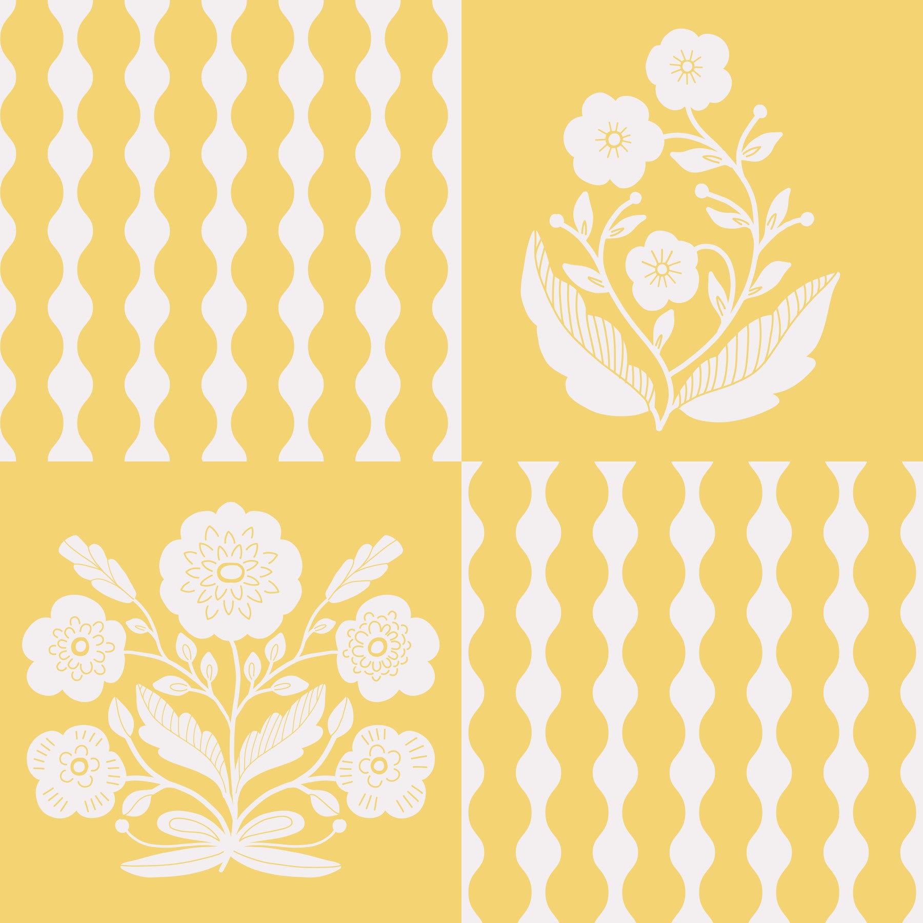 Bring the sunshine inside with this retro-inspired wallpaper. White flowers and bold stripes are set on a light yellow background. Perfect for kitchens, kids' rooms, or hallways, the contrasting elements make this wallpaper for walls a unique and eye-catching choice. This wallpaper complements mid-century modern and eclectic interiors. Enjoy a touch of vintage charm with a contemporary twist. Change your interior now.
