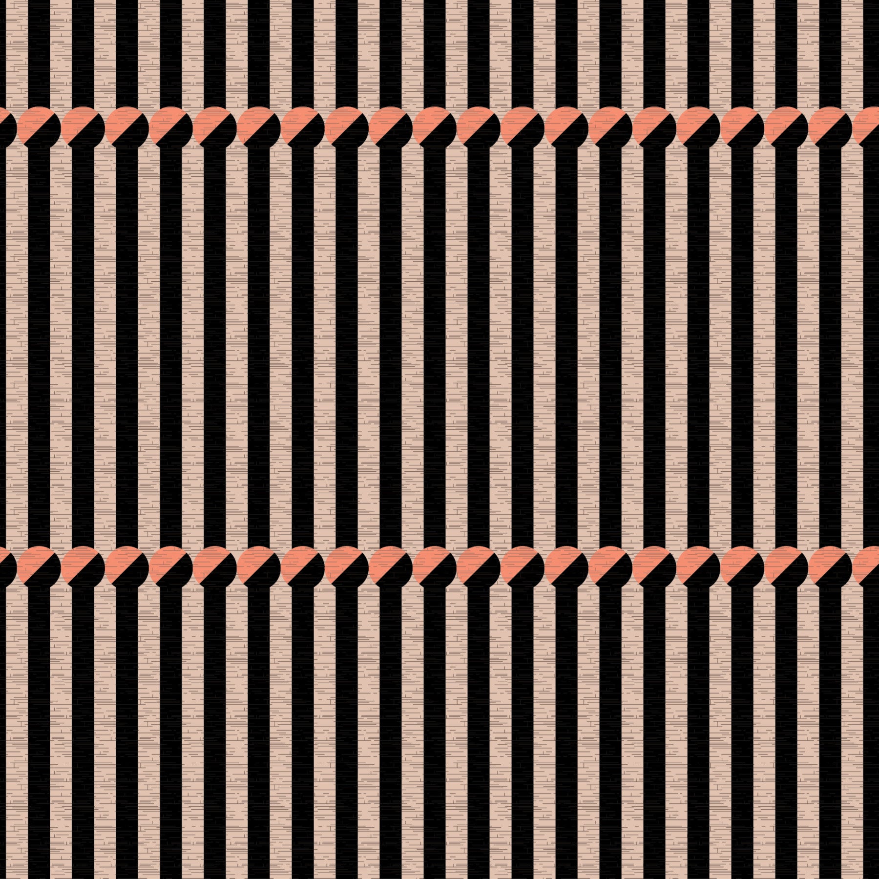 Retro Lines is a striking vertical stripe design that combines timeless order with a touch of playful rhythm. The alternating black and blush stripes are accented with small diagonal segments that break the uniformity in a fresh, dynamic way. Elegant and modern, this design suits home interiors seeking a touch of structured sophistication.