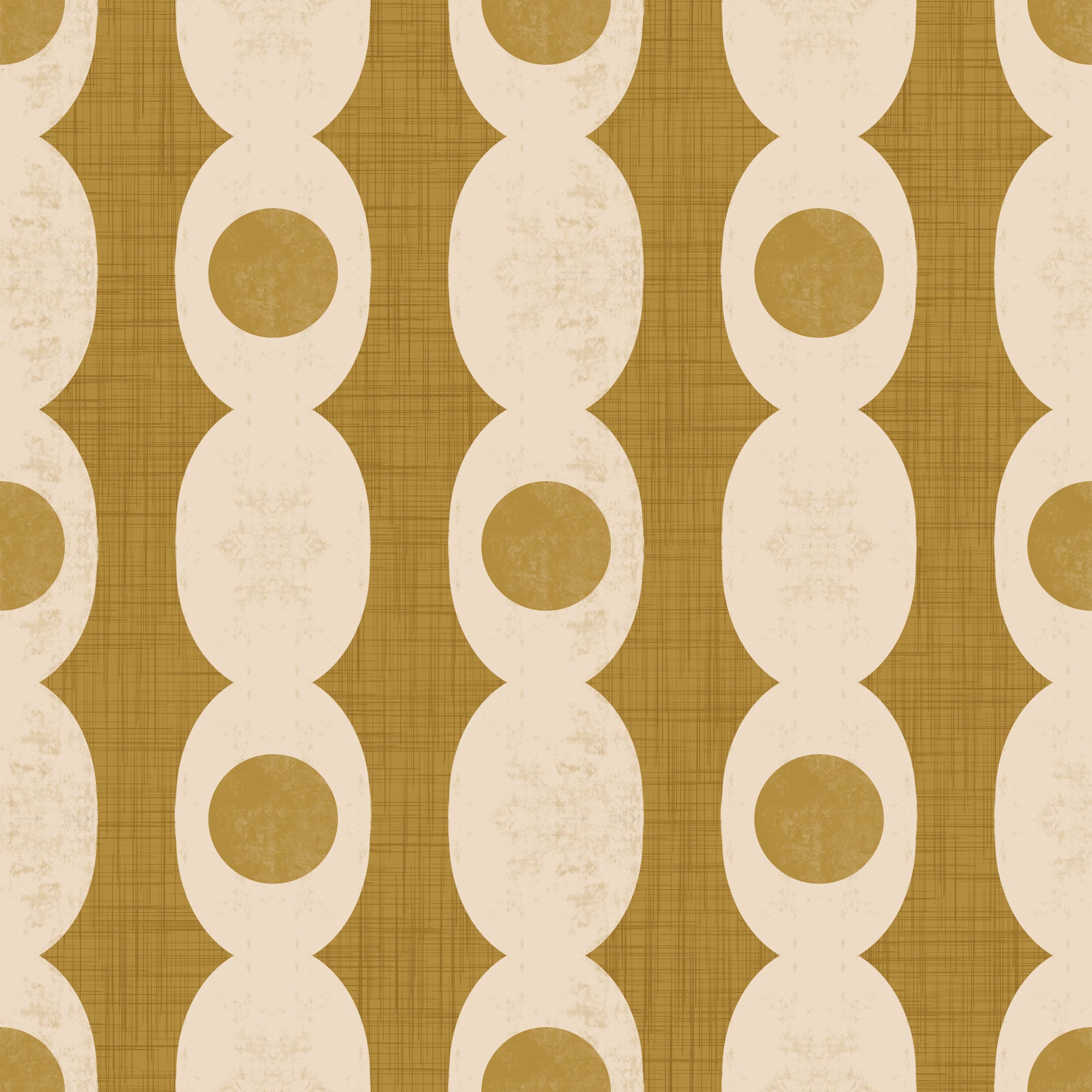 Mid-century gold beige Retro Ovals Wallpaper pattern