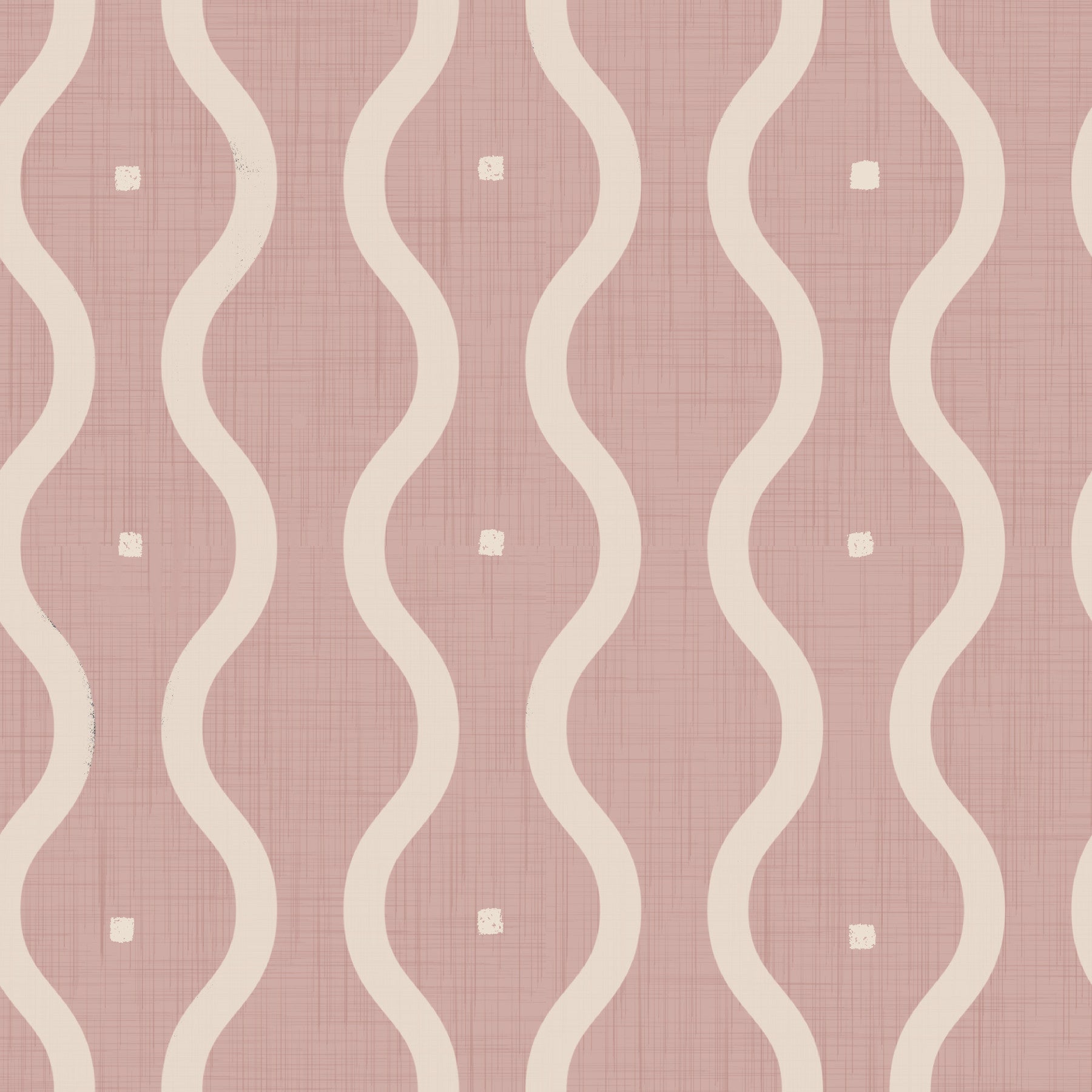 Invoke a sense of calm with this retro peach wave wallpaper for walls. This design features a repeating pattern of soft, curving lines in cream against a blush pink background. The subtle grid texture adds depth and character. Great for creating a serene atmosphere in bedrooms, living rooms, or hallways. Its warm tones and flowing lines complement minimalist and mid-century modern interiors.
