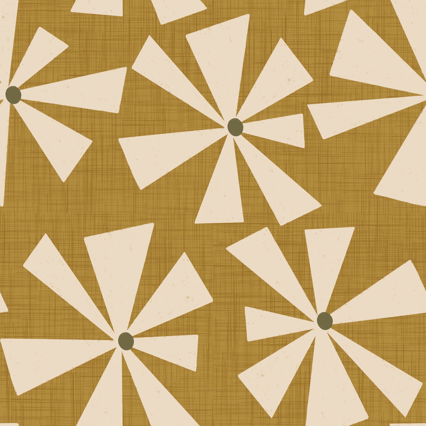 Whimsy Retro Sunburst Bloom Wallpaper for walls, khaki texture.