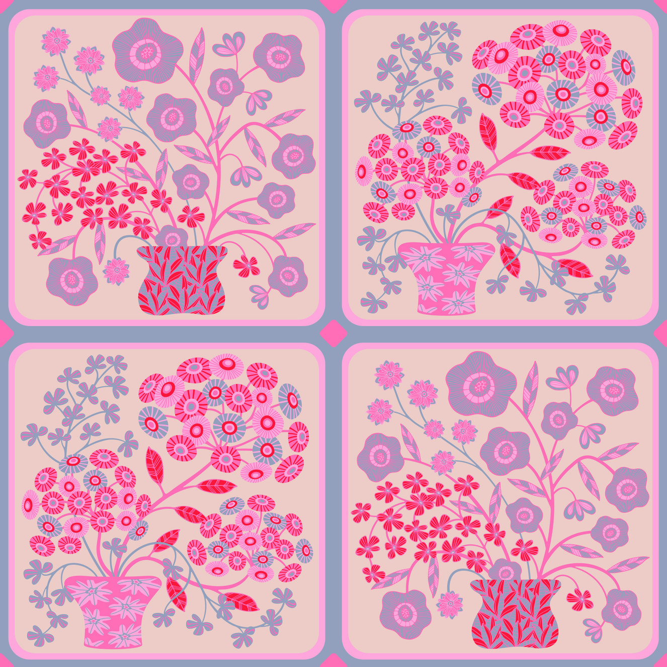 Pink, mocha, and wine red floral wallpaper for walls