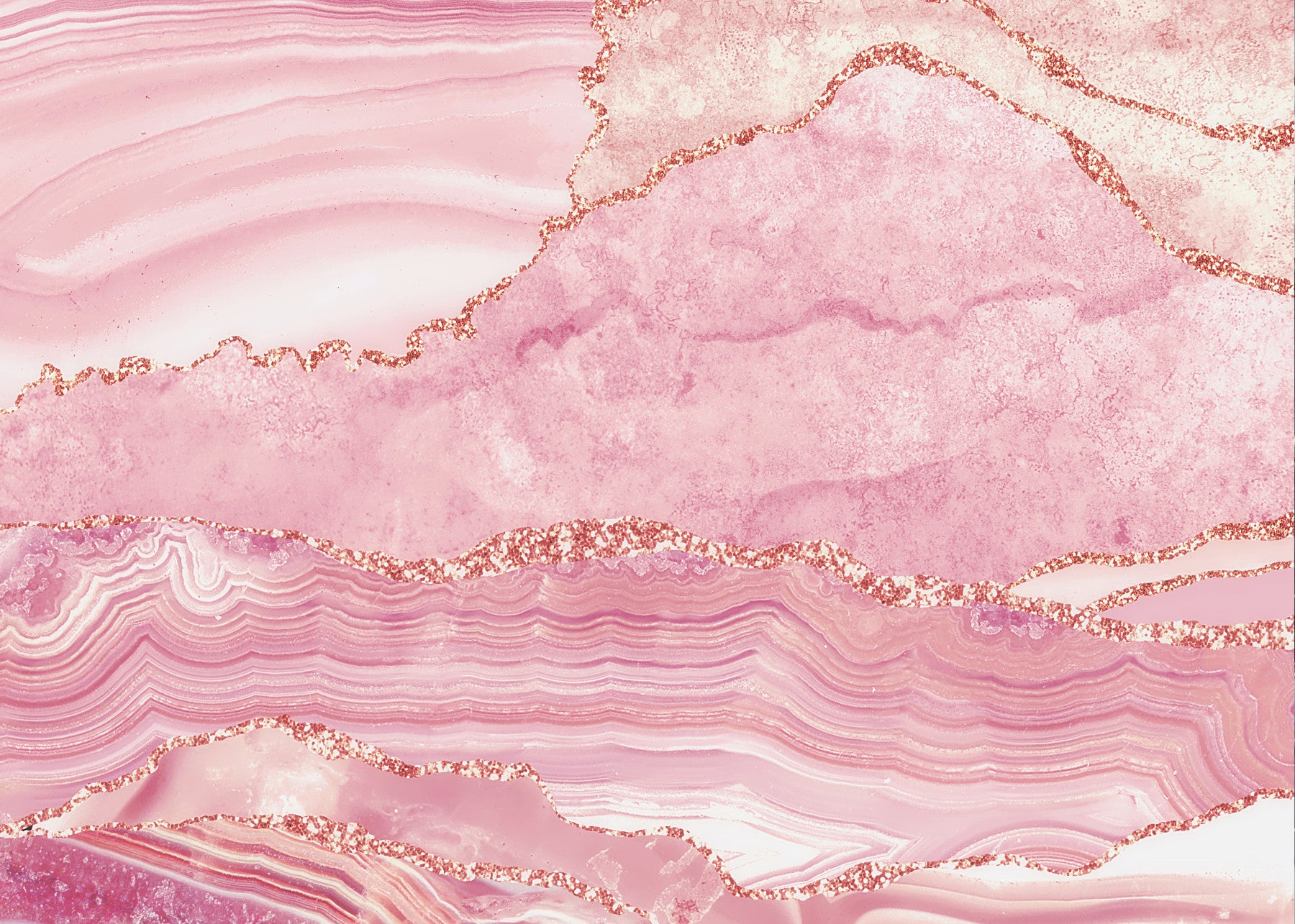 Enliven spaces with this beautiful, abstract wallpaper for walls. The image offers soft pink tones with shimmering gold accents, creating a luxurious and calming atmosphere. Ideal for bedrooms, living rooms, or bathrooms, this design adds a touch of elegance. The flowing lines and subtle gradients make it a perfect complement to modern and classic interiors alike. Experience the tranquility of rose quartz with a hint of sparkle.