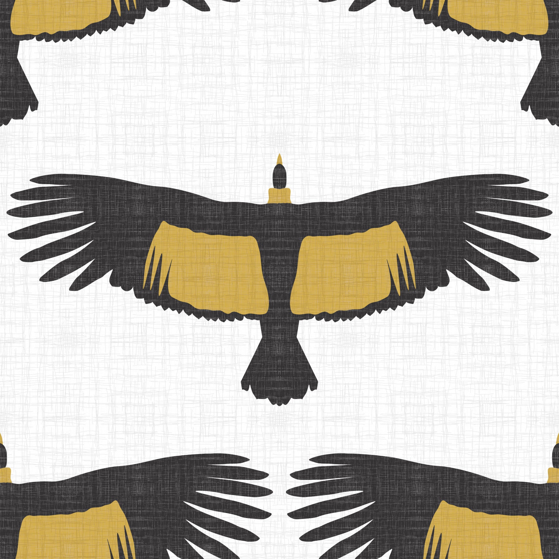Rustic Andean Condor Flock White Wallpaper features bold silhouettes of Andean condors with distinctive golden ochre wing patches, set against a textured white linen-like background. This mural wallpaper is perfect wallpaper for walls in living rooms, offices, or nature-inspired spaces that celebrate majestic wildlife. The strong contrast of black, gold, and white creates a striking yet balanced look. Made from durable, easy-to-install materials, this wall mural retains its rich colors and rustic texture over time. Ideal for interiors that combine modern style with natural elements, offering a unique and artistic focal point.