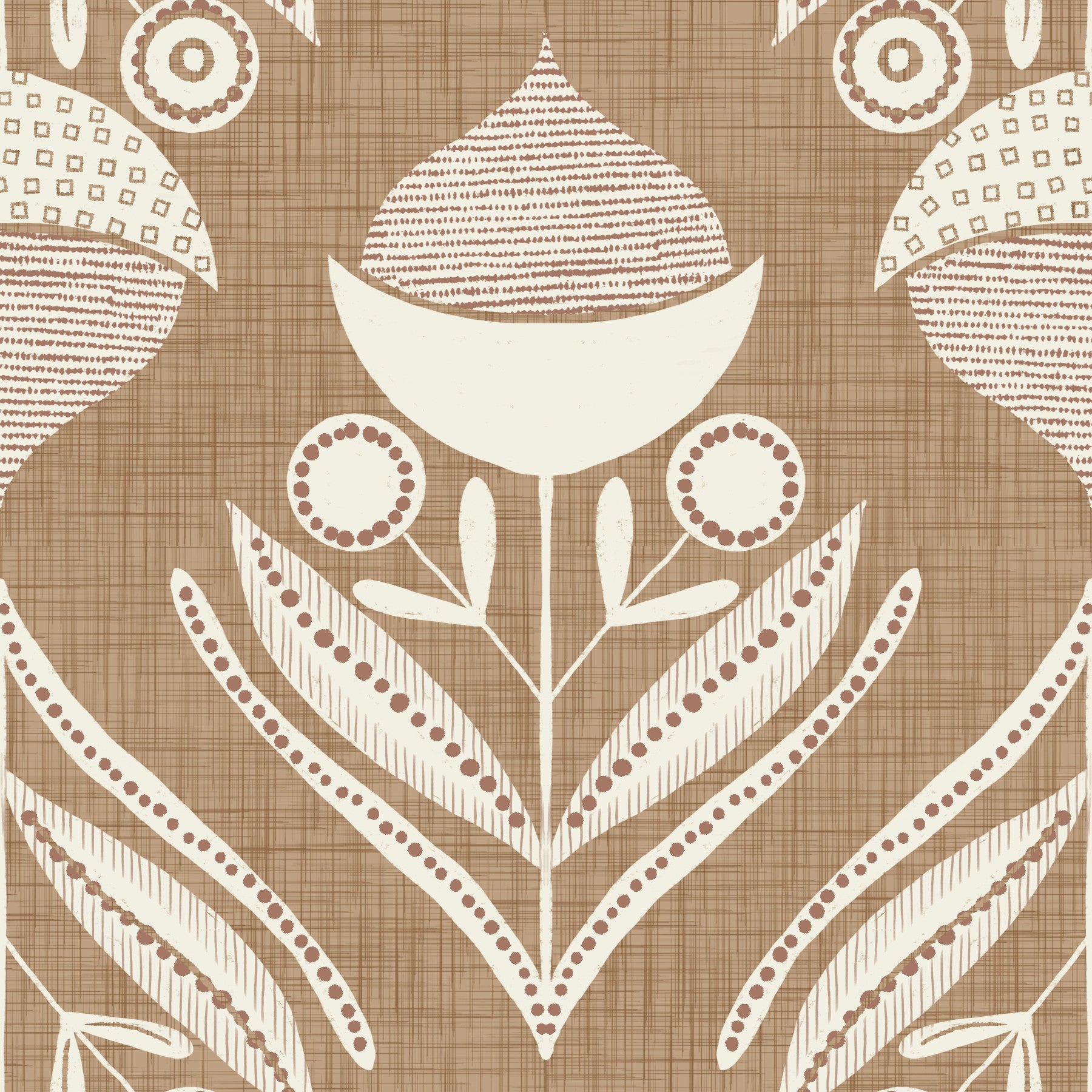 Rustic Bloom Wallpaper with a whimsical, stylized bloom pattern.