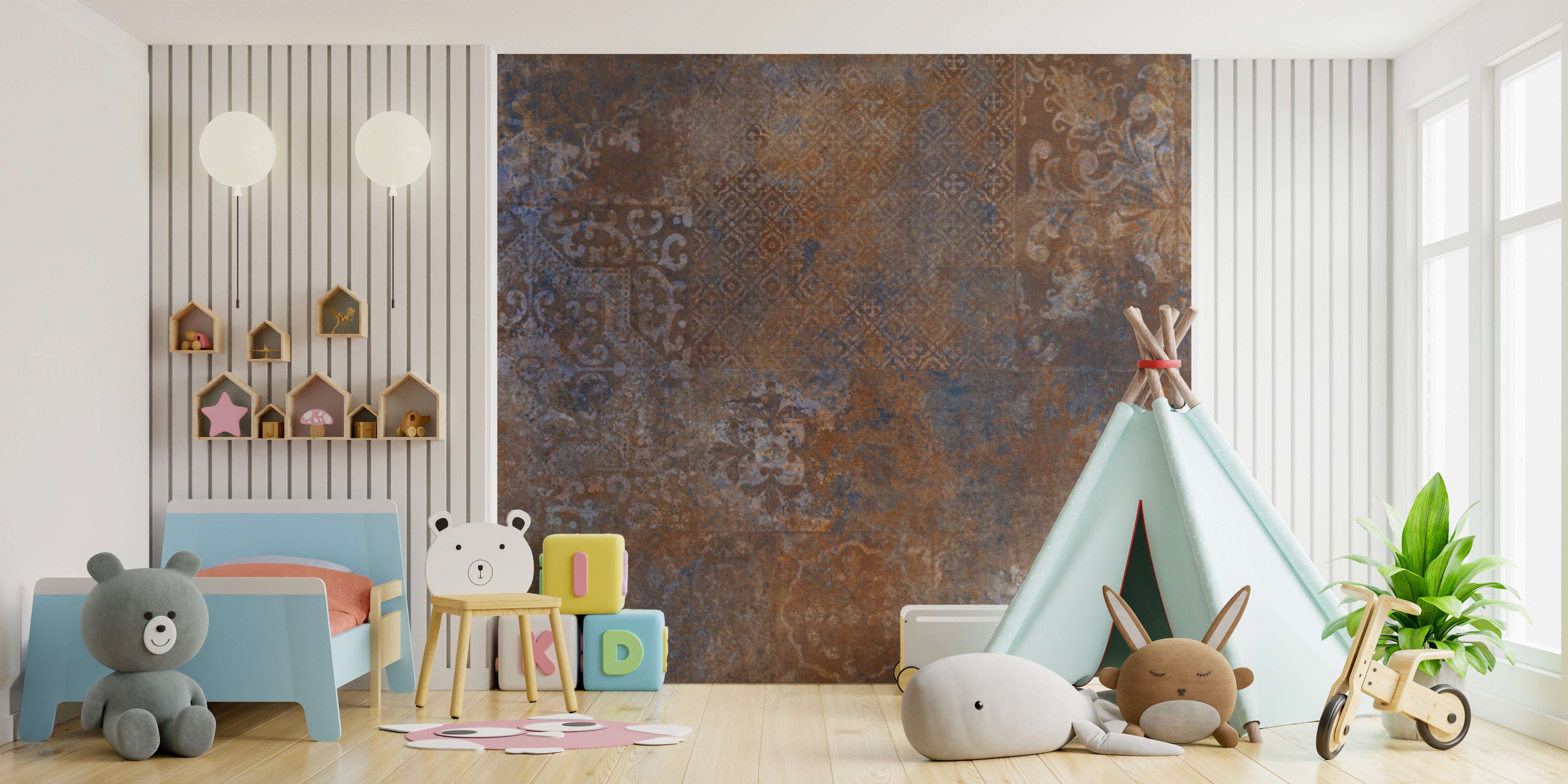 This rustic wallpaper blends weathered textures with vintage patterns, creating an aged yet sophisticated look. The rich combination of earthy browns, deep blues, and faded motifs evokes the charm of antique surfaces. Designed for industrial, farmhouse, or vintage-inspired interiors, this distressed effect brings character to walls. Whether used in a living room, office, or restaurant setting, it adds warmth and depth to any space. Crafted from high-quality materials, it ensures durability and a refined finish. Perfect for those who appreciate rustic charm, this rustic wallpaper delivers an authentic, timeworn appeal that enhances any interior.