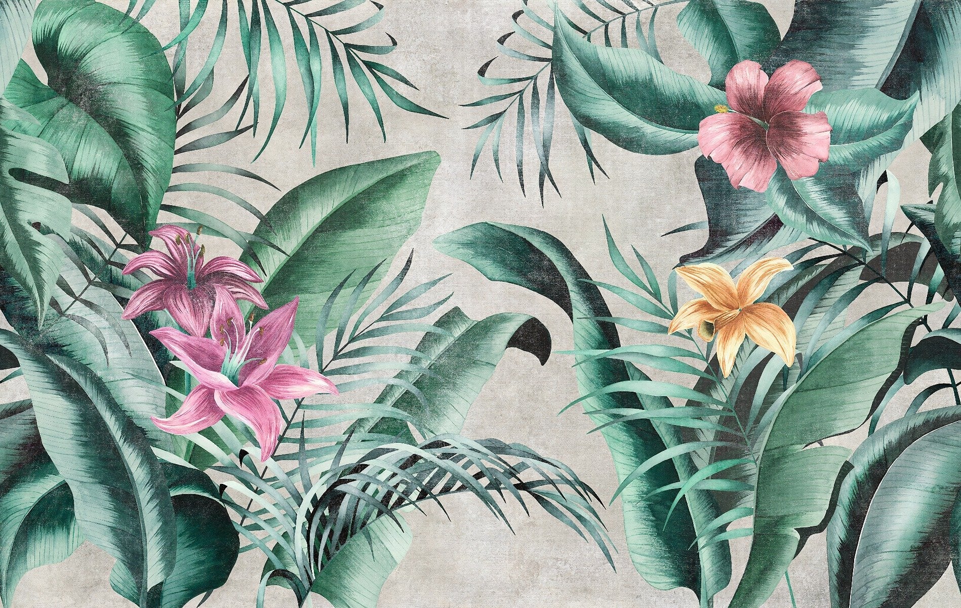 Rustic Floral Large Green Leaves Wallpaper Mural - Giffywalls
