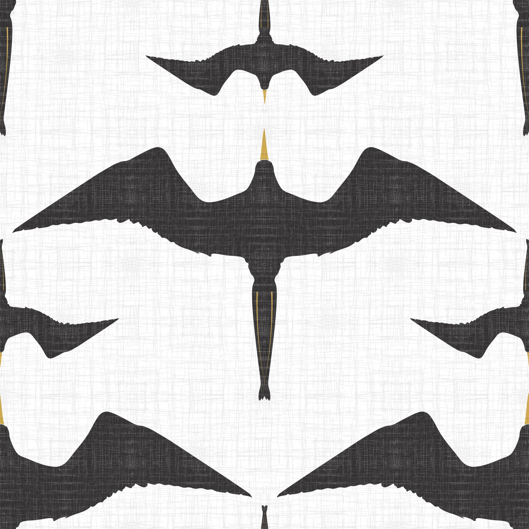 Rustic Frigate Flock White Wallpaper features striking frigatebirds in silhouette, soaring across a soft white background with a subtle linen-like texture. The clean black and mustard tones give the birds definition while keeping the overall design airy and modern. This mural wallpaper is perfect wallpaper for walls in hallways, bathrooms, or creative studios, offering a sense of calm movement and skyward openness. Made from durable, easy-to-install materials, this wall mural keeps its bold style and delicate texture intact over time. Ideal for minimalist, coastal, or rustic interiors with a touch of artistic flair.