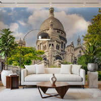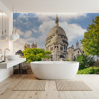 Transform your living spaces with the timeless elegance of this captivating basilica design. This striking wallpaper for walls features the Sacré-Cœur against a backdrop of a gentle blue sky, infusing any room with a sense of grandeur. Its intricate details and soft color palette of stone, green, and sky blue work beautifully in a living room, hallway, or dining area. This wallpaper introduces architectural interest, enhancing the walls with a classic touch. The design brings a blend of history and tranquility into your home.